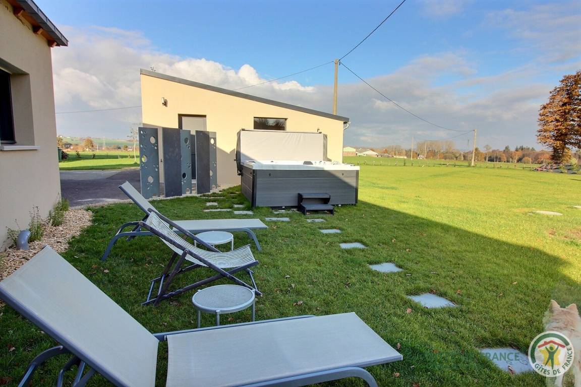 „Accueil fort sympathique du couple d‘hôtes. Merci pour les petites attentions. La maison est spacieuse, très propre et possède tout le confort qu‘on peut en attendre. Il est facile de se laisser aller à profiter de calme, sur la terrasse ou à l‘abri dans la pergola. Cerise sur le gâteau le SPA! Nous avons passé un fort agréable séjour en compagnie de nos deux chiens qui ont pu profiter du terrain pour se dégourdir les pattes. Merci à Régine et Samuel!“
