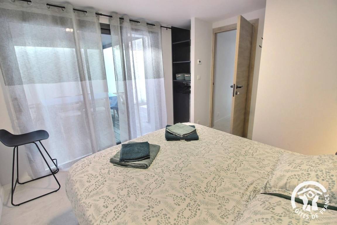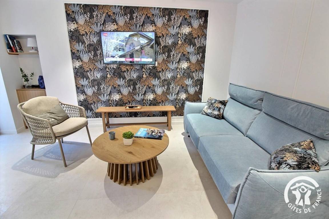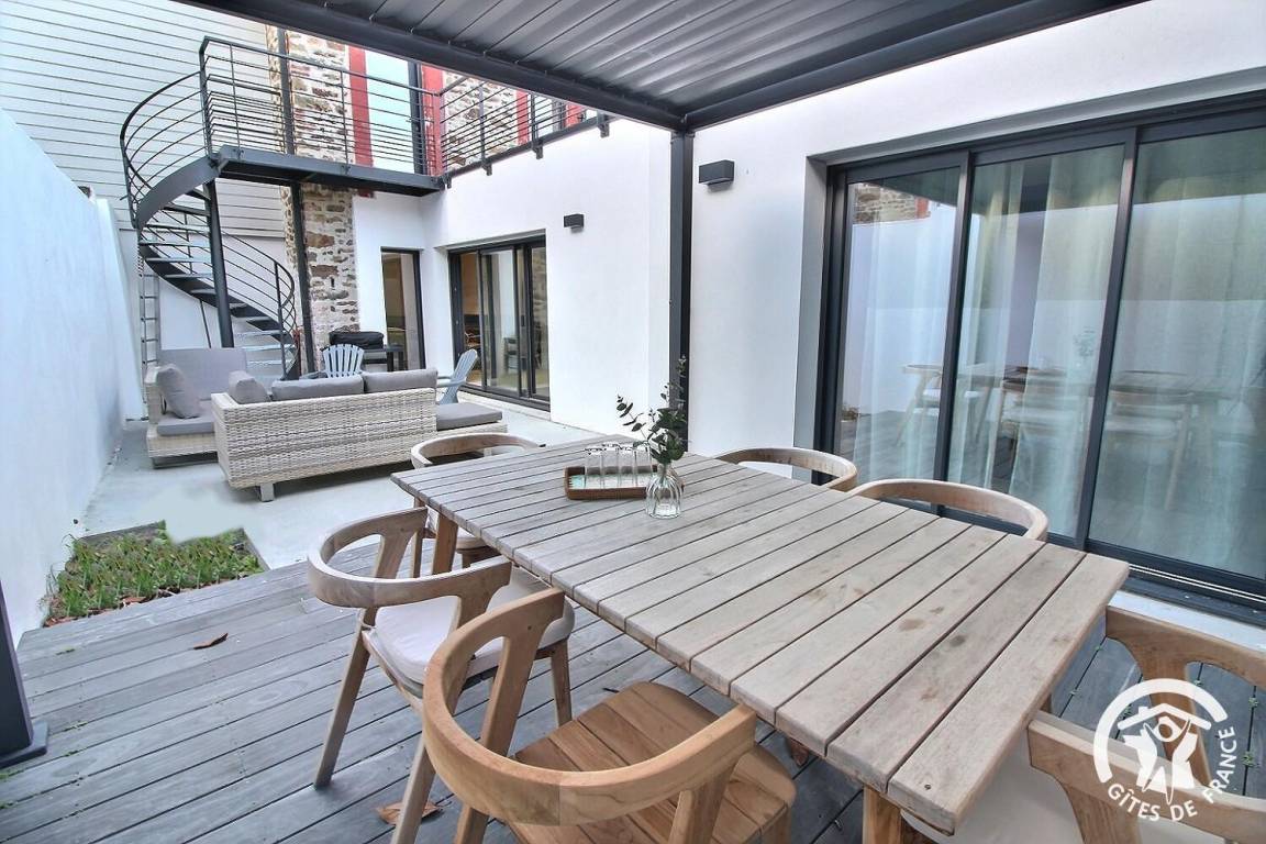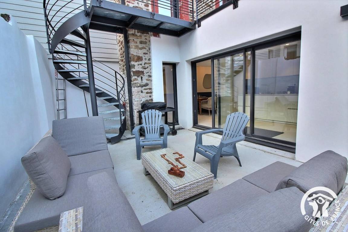 Diese Doppelhaushälfte, ebenerdig, sorgfältig und raffiniert eingerichtet, verfügt über eine helle, von den Eigentümern gestaltete Terrasse, die den fehlenden Garten kompensiert. Der Wohn- und Essbereich lädt nach einem Tag am Meer zum Entspannen ein.