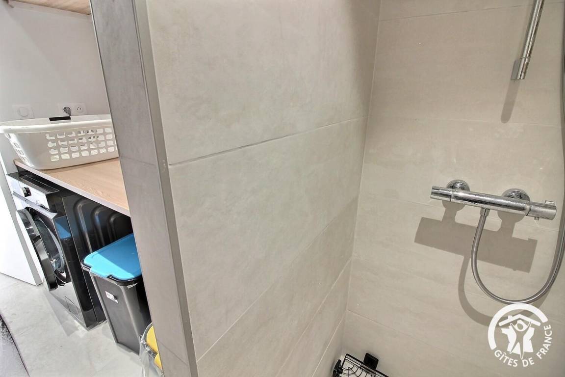 • Ein Strandzimmer mit Dusche und Waschmaschine, das mit dem 2-Personen-Apartment im Obergeschoss geteilt wird – praktisch nach einem Tag am Strand