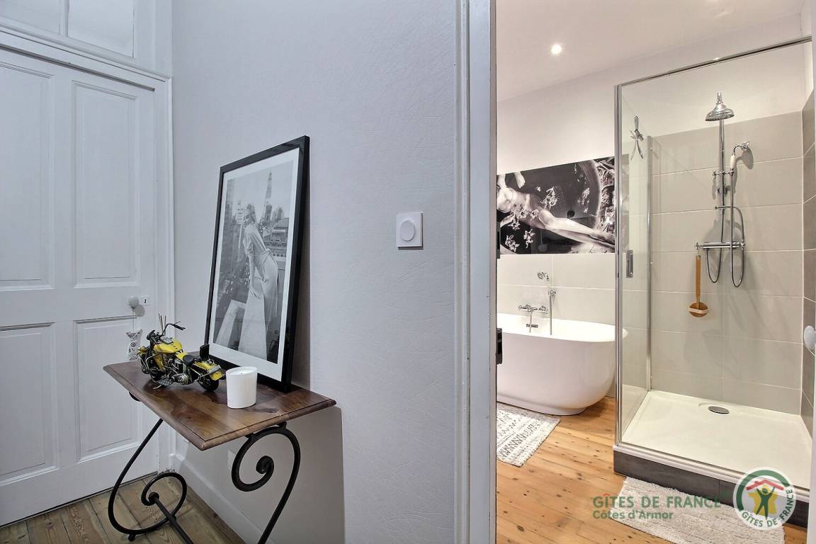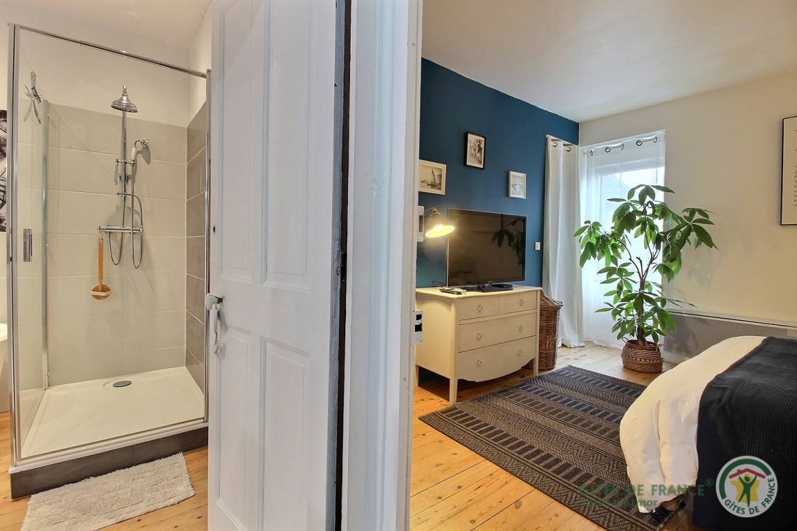 „Nous avons passé une délicieuse semaine à la Pastelle qui est un havre de paix en plein centre de Pléneuf-Val-André (Les commodités sont au pied de la porte et on peut rayonner facilement pour les balades). La décoration soignée contribue à faire de ce gîte une perle.“