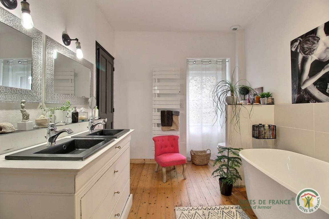 „Une jolie maison où dès notre entrée on s'y sent bien. Tout le confort y ait. Carole est adorable ! La ville de pleneuf Val André est magnifique, ultra fleurie, à deux pas de la mer. Une location idéal pour tous les couples !“