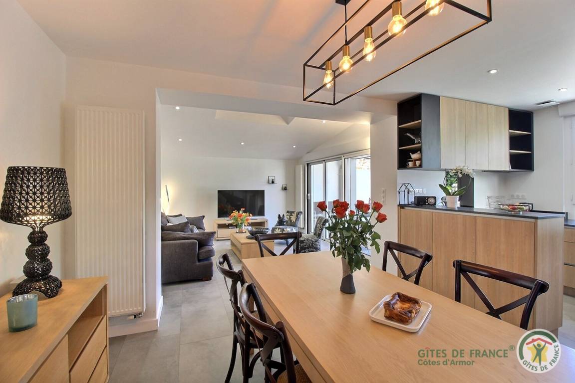 „Magnifique séjour au 117 qui offre tout le confort souhaité et un cadre â la fois moderne et chaleureux. Pour les gastronomes, la cuisine est on ne peut mieux équipée. La situation est idéale eu égard à la proximité de la plage, du petit port de Dahouët, du GR 34 et des commerces. Nos hôtes, très sumpathiques, nous ont réservé le meilleur accueil via diverses gentilles attentions. Si l'occasion nous est donnée, assurément nous reviendrons !“