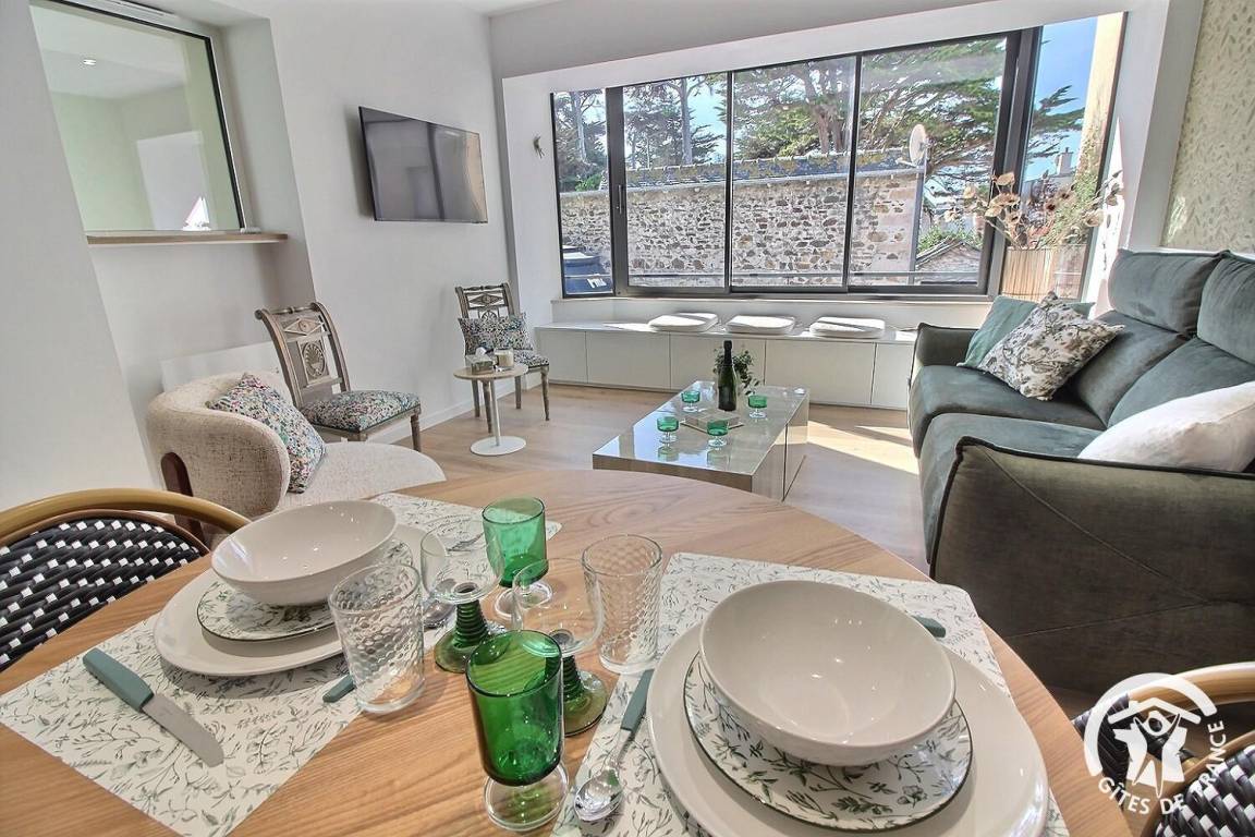 Dank dieser erstklassigen Lage sind Sie nur wenige Schritte vom herrlichen 2,5 km langen Strand von Val-André sowie den Wanderwegen GR34 für herrliche Küstenwanderungen entfernt. Das Casino ist 300 m, das Thalassotherapie-Zentrum 200 m und der Golfplatz 1,6 km (5 Autominuten)