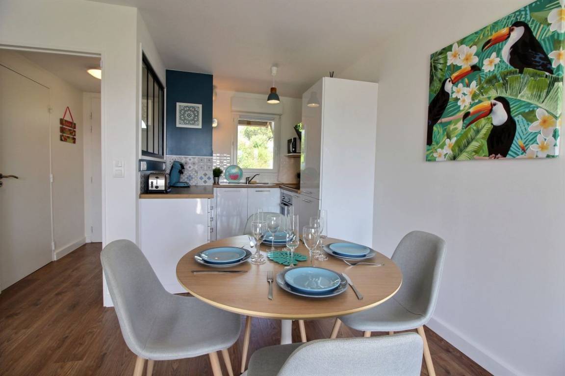 „Nous avons passé un excellent séjour dans ce gîte très confortable, la décoration est faite avec goût, on s'y sent vraiment bien, de plus le temps étant magnifique nous avons pu profiter de la terrasse ce qui est un vrai plus et aussi de la plage qui est très proche, tout cela avec un accueil très sympathique, que demander de plus? ?“