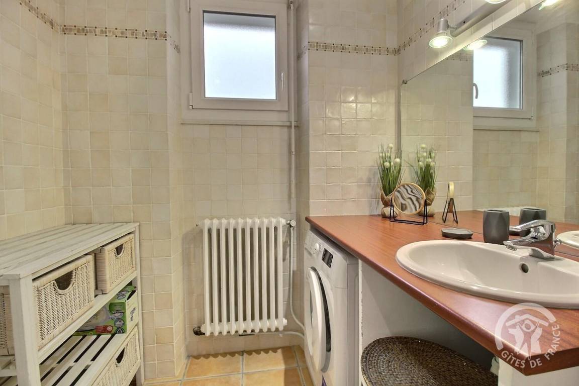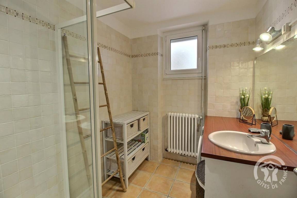 3 Schlafzimmer: ein Schlafzimmer (1 Bett 160x200) mit eigenem Badezimmer (Dusche), ein Schlafzimmer (3 Betten 90x190) und ein letztes (1 Bett 90x190), Toilette mit Waschbecken.