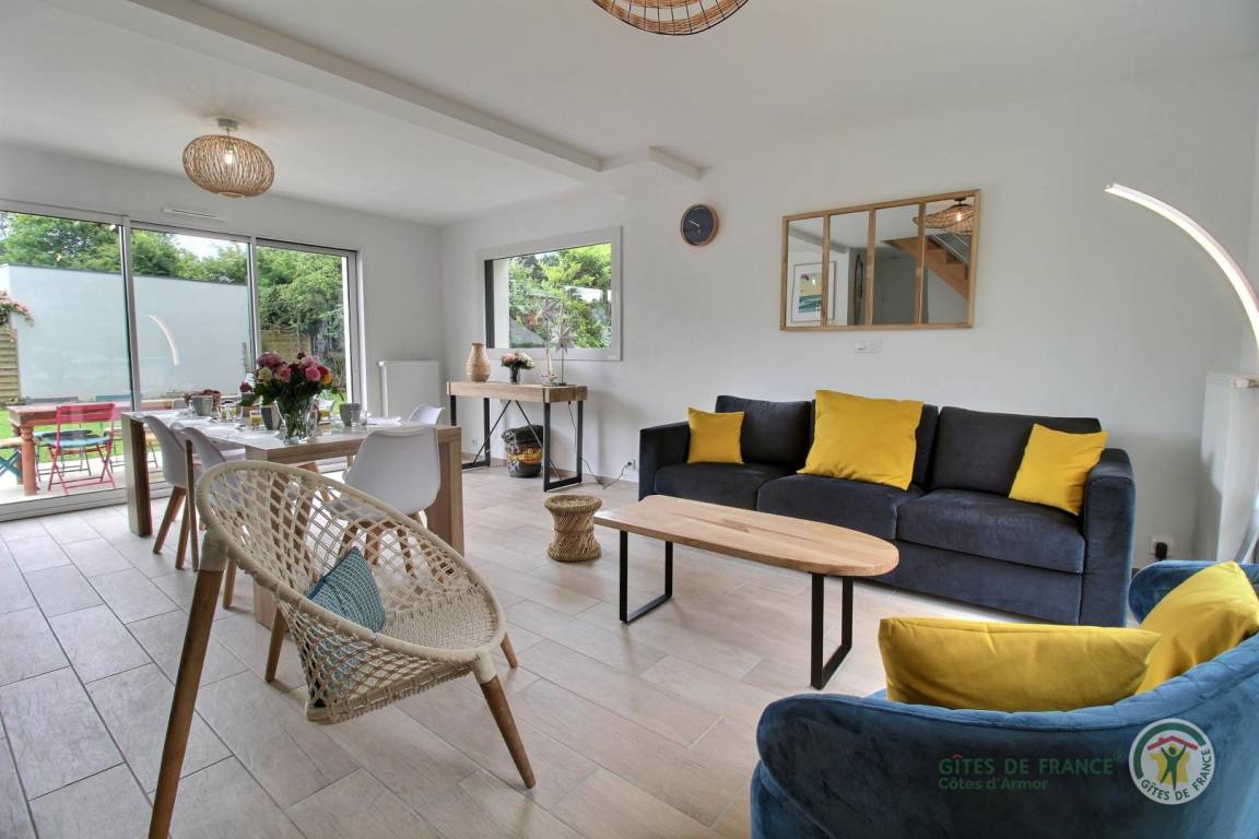 „Nous avons passé un excellent séjour. La maison est spacieuse, très confortable et bien équipée. Elle est très bien située, au calme et à quelques minutes à pied de l'immense plage de la Ville Berneuf et des sentiers côtiers. La côte entre Pleneuf et Frehel est très belle.“