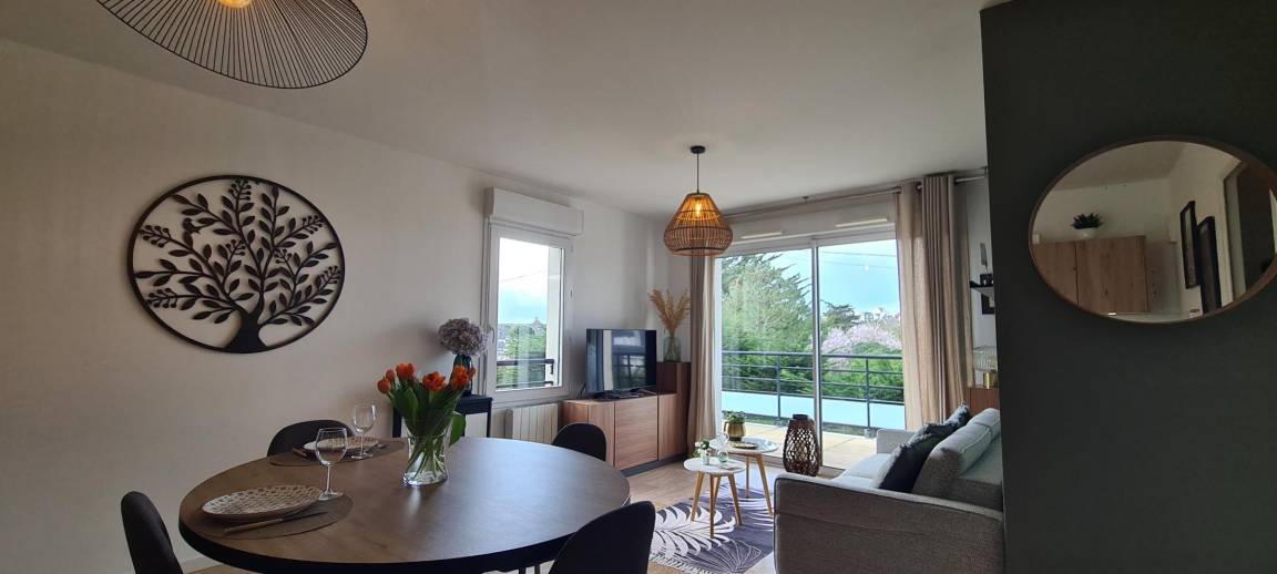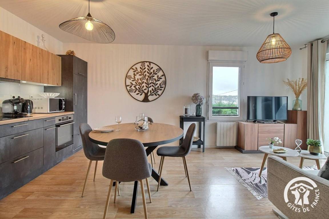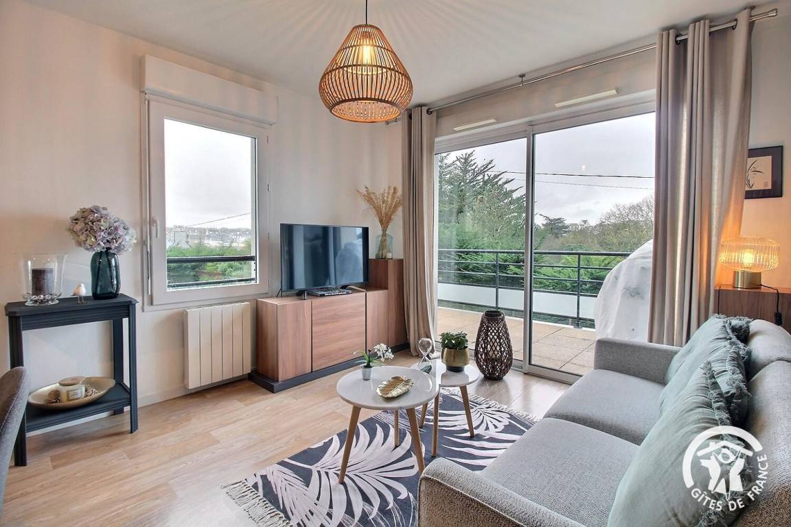 Hier ist alles auf Ihren Komfort ausgerichtet: stilvolles Dekor, umfassende Ausstattung und eine erstklassige Lage nur 200 Meter vom Meer entfernt. Lassen Sie Ihr Auto stehen und genießen Sie einen Aufenthalt, bei dem alles bequem zu Fuß erreichbar ist. Restaurants, Geschäfte, das Casino und das Thalassotherapiezentrum für entspannende Momente befinden sich in unmittelbarer Nähe. Nur 250 Meter entfernt erstreckt sich der 2 Kilometer lange, feine Sandstrand von Val-André – einer der schönsten an der Küste von Penthièvre, perfekt zum Schwimmen und für lange Strandspaziergänge. Wanderfreunde erreichen von hier aus bequem den Küstenwanderweg GR34, der entlang der Küste verläuft und spektakuläre Ausblicke auf das Meer bietet. Ergänzen Sie Ihre Ausflüge mit den unberührten Stränden von Erquy (12 km entfernt) oder der herrlichen Landschaft von Cap Fréhel (25 km entfernt).