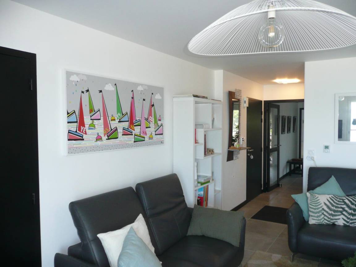 Ihre Wohnung befindet sich im 1. Stock mit Aufzug in einer kleinen Luxusresidenz und umfasst auf derselben Ebene: Eingangshalle mit Schrank, großes Wohnzimmer mit Zugang zum Balkon und Panoramablick auf den Strand, sehr schöne, gut ausgestattete Küche , kleine Waschküche auf der Rückseite, ein zweiter Loungebereich und ein Büro mit Verbindung zu einer zweiten Terrasse. 1 Hauptschlafzimmer mit Meerblick (1 160x200-Bett - großer Flachbildfernseher) und eigenem Bad (Badewanne und WC). 1 Schlafzimmer (2 90x200-Betten - großer Flachbildfernseher) mit eigenem Bad (Dusche auf Italienisch), separates WC. Privater Parkplatz auf dem sicheren Parkplatz der Residenz. Fahrrad-/Windsurf-Sitzungsraum verfügbar. Voll ausgestatteter Telearbeitsraum (Bürotyp).