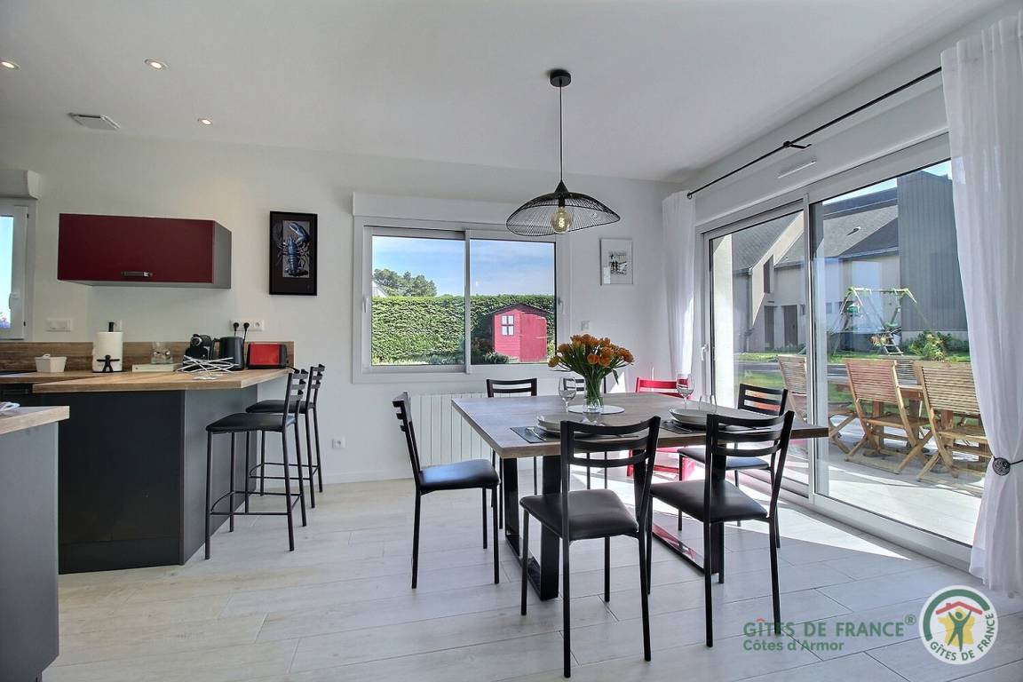 „Très belle en maison en super état dans un quartier résidentiel très calme. Le logement est spacieux et bien entretenu. Vous y trouverez tous le nécessaire de cuisine. L’emplacement est bien situé entre le mont saint Michel, Dinard, St Malo d’un côté et Paimpol, l’île de Brehat et la côte de granit rose de l’autre côté. Parfait pour visiter la Bretagne nord. A réserver sans réfléchir.“