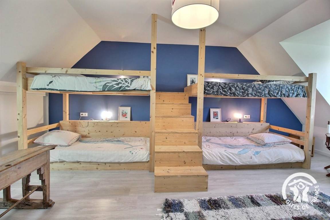 1 Schlafzimmer (1 Queensize-Bett) und ein Schlafsaal mit Etagenbetten (4 hochwertige Betten à 90 x 200 cm), Badezimmer (Badewanne und Dusche) und separates WC.