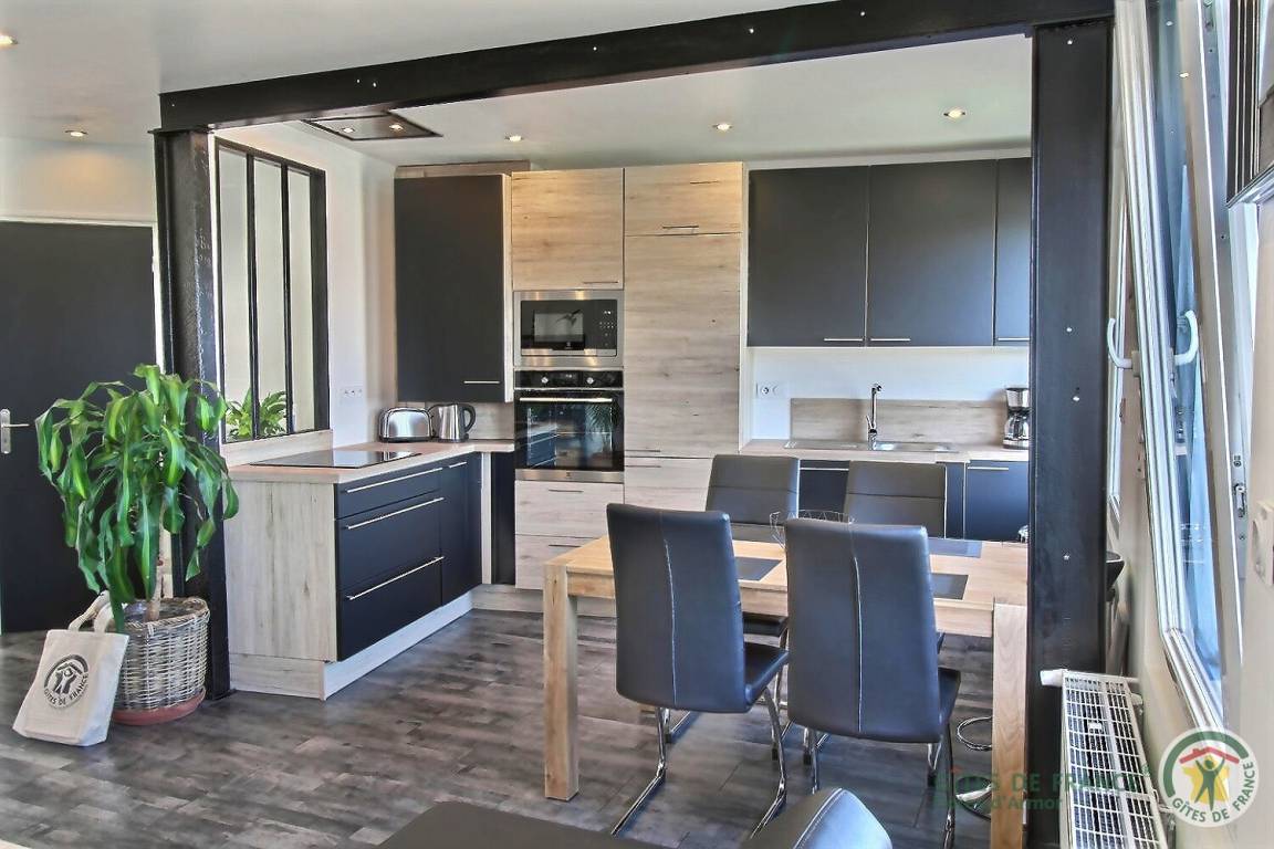 „Location très agréable et lumineuse même quand il fait gris, on peut guetter les éclaircies..Espace, confort et bon équipement, il y a même un sèche linge!Accueil sympathique de la propriétaire et de son fils. Après la rénovation prévue de la salle d'eau, ce sera parfait!“