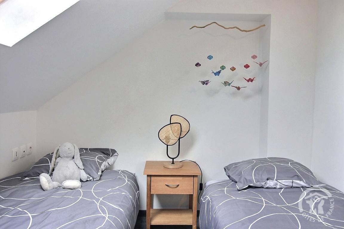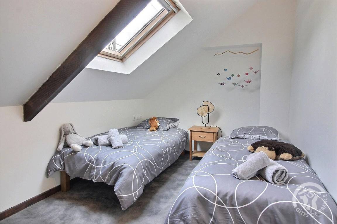 - ein Schlafzimmer auf der Straßenseite mit 2 Einzelbetten 90X200, die auf vorherige Anfrage zu einem großen Bett zusammengestellt werden können,
