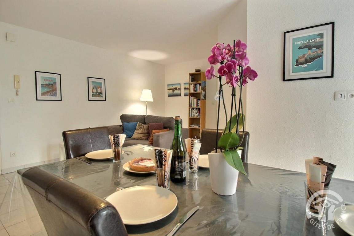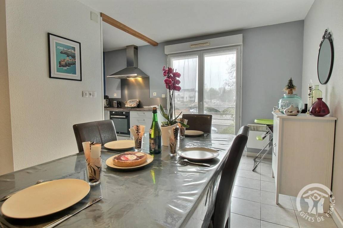 „Situé dans une résidence calme, sécurisée, et proche des commerces, l’appartement est spacieux et fonctionnel. Livres, jeux de sociétés, lecteur DVD et TV connectée sont à disposition en cas de météo capricieuse. Le meilleur accueil nous a été réservé avec madeleines et bouteille de cidre. Carte et dépliants à l’appui, la propriétaire nous a indiqué les sites touristiques à ne pas manquer. Alors n’hésitez plus, venez.“