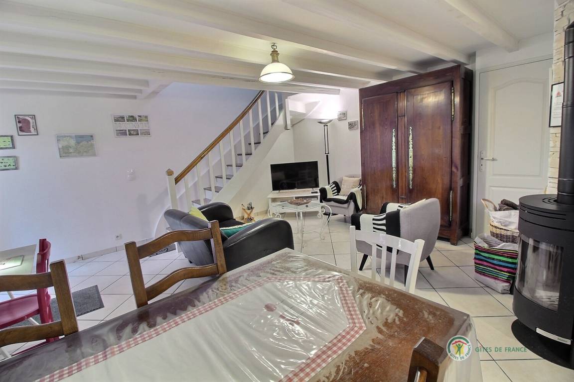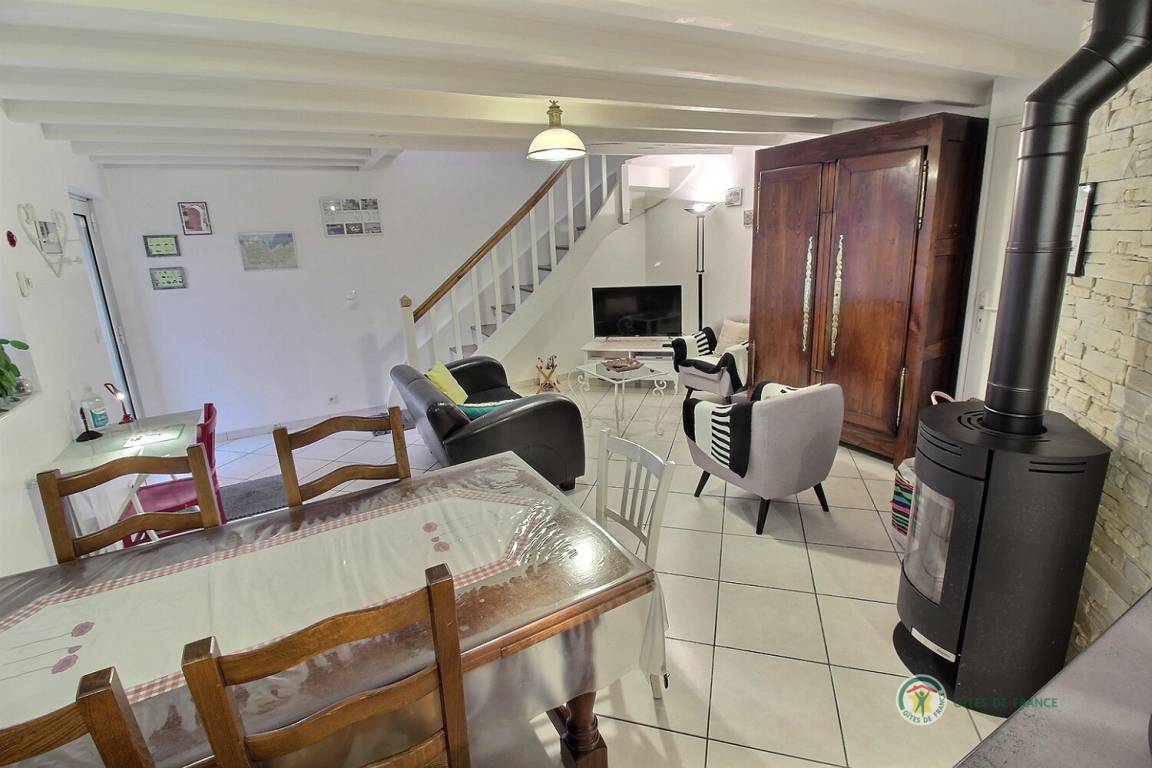 Dieses Ferienhausangebot enthält : Im Erdgeschoss: ein Ess-Wohnzimmer mit einer Einbauküche, Dusch-Badezimmer und WC. Im 1. Stock : ein Podest mit TV, 2 Schlafzimmer (1 Bett x 2 Personen) und (2 Betten x 1 Person), ein Badezimmer mit Badewanne und WC. Babybett, Hochstuhl und Wanne verfügbar. Ein einziges Tier ist zugelassen. Terrasse von 15 m² und Privatgarten von 400 m². Parkplätze entlang des Grundstücks oder öffentliche Parkplätze. Holz : erstes Feuerchen gratis, dann 30 €/Schubkarre. Kurtaxe zahlbar vor Ort.