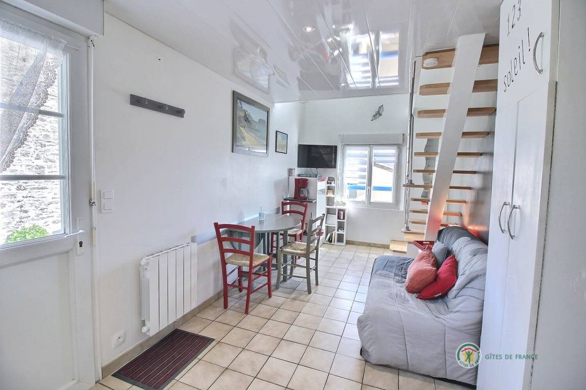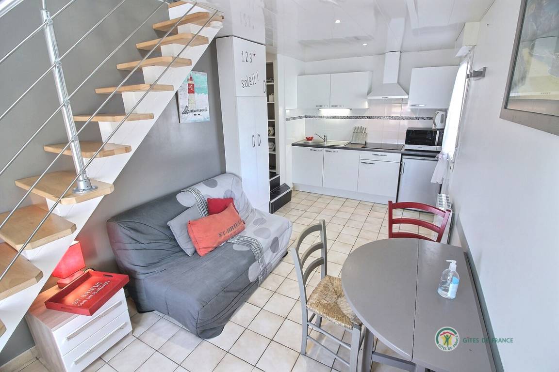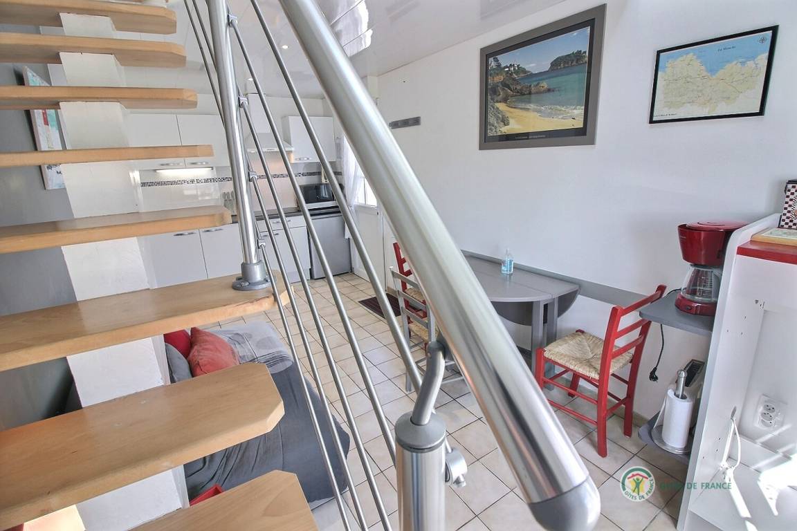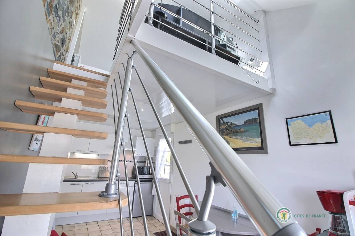 „Petite surface optimisée avec couchage de qualité en mezzanine (vrai escalier) et tous les éléments de confort. Pas de jardin mais les alentours sont propices à la balade (champ avec vue sur la mer à proximité). Accueil au top !“