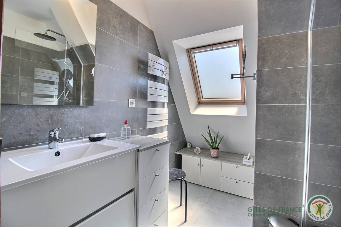 „Ce gîte est un bijou à tous points de vue. L'emplacement à 2 pas de la mer permet de s'y baigner en sortant de son lit. La température de l'eau de la baie de StBrieuc était délicieuse. Les propriétaires nous ont accueillit d'une manière extraordinaire. L'emplacement de ce gîte permet de rayonner très rapidement dans cette région de Bretagne qui est superbe. En bref: Que du bonheur.“