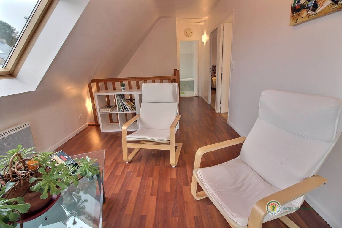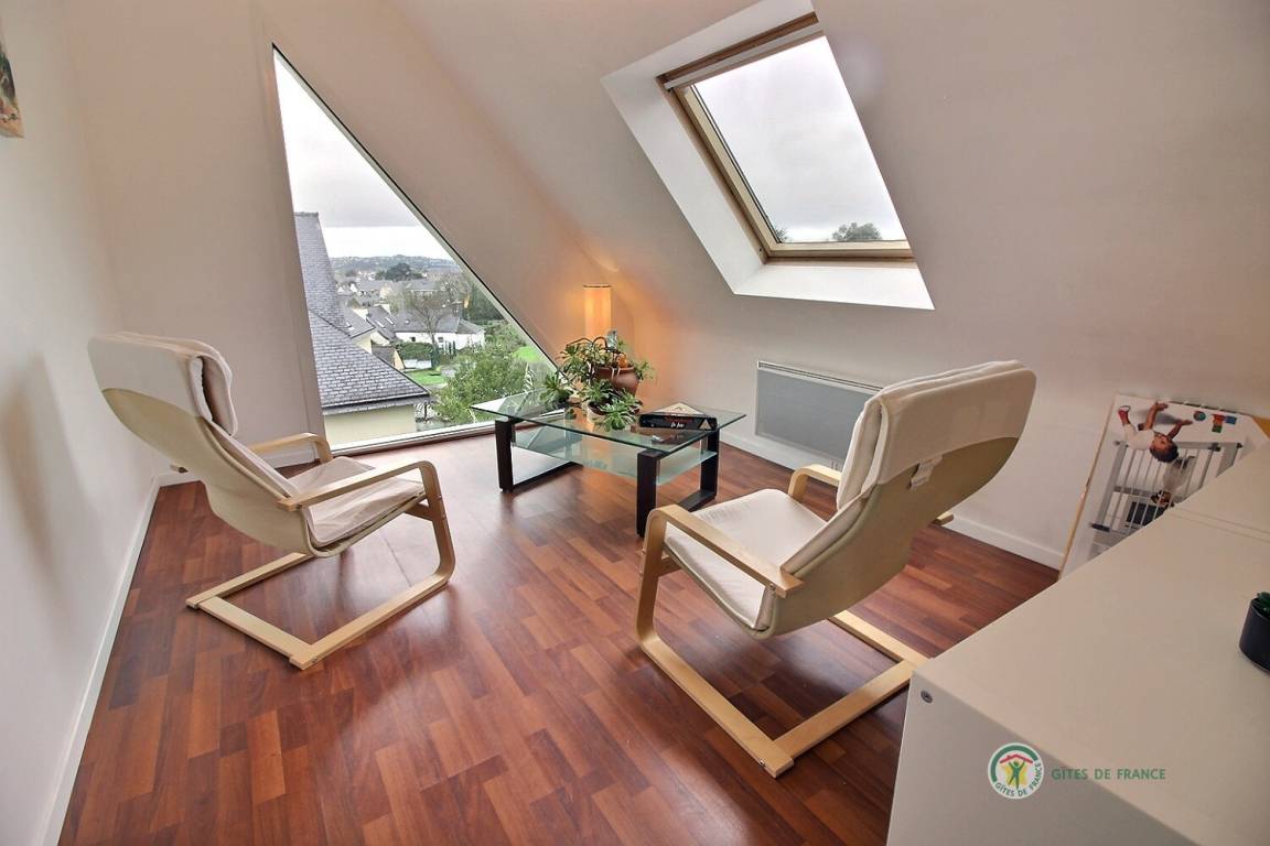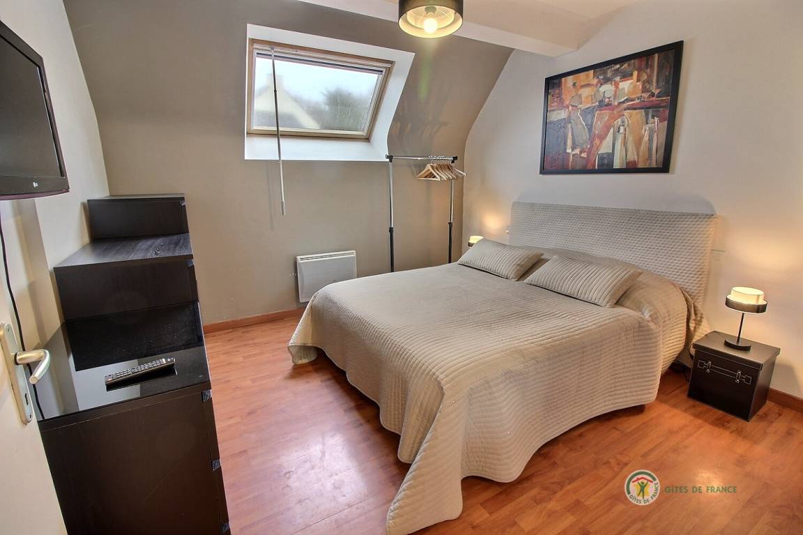 Ihre Ferienwohnung bietet im Erdgeschoss: ein großes Wohnzimmer mit TV (Netflix), einen Essbereich und eine voll ausgestattete Küche, eine Garage/Waschküche (zur Aufbewahrung von Fahrrädern, Windsurf-Ausrüstung etc.), ein Schlafzimmer mit einem 160x200 cm großen Bett (TV) und eigenem Duschbad sowie ein separates WC mit Waschbecken. Im Obergeschoss befinden sich zwei Schlafzimmer, eines mit einem 140x190 cm großen Bett und das andere mit zwei 90x190 cm großen Betten, ein Badezimmer mit Badewanne, ein separates WC und eine Galerie mit herrlichem Blick auf Plestin. Außerdem gibt es eine 25 m² große Terrasse und eine 500 m² große private Rasenfläche.