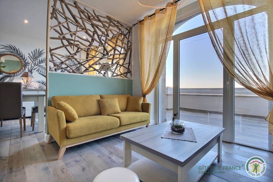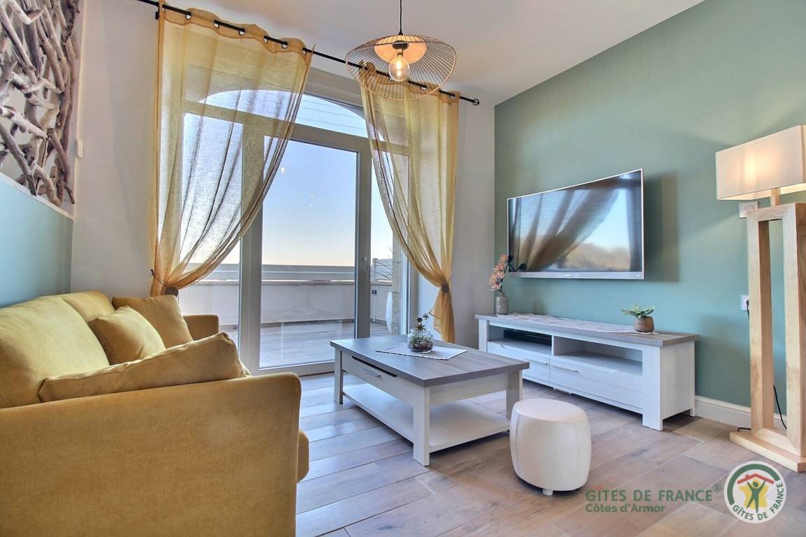 „Appartement RDC FACE A LA MER ! Vue et emplacement exceptionnels. Belle terrasse vue mer. Grand espace SAM-salon-cuisine, très illuminé, deux chambres et une SDB. Le tout en état parfait, avec une décoration moderne et chic. Plestin offre une très grande plage à parcourir en toutes saisons. Le GR34 y passe. Plein de sites magnifiques à proximité pour découvrir la Bretagne (Roscoff, Saint-Pol-de-Léon, etc.) . A recommander.“