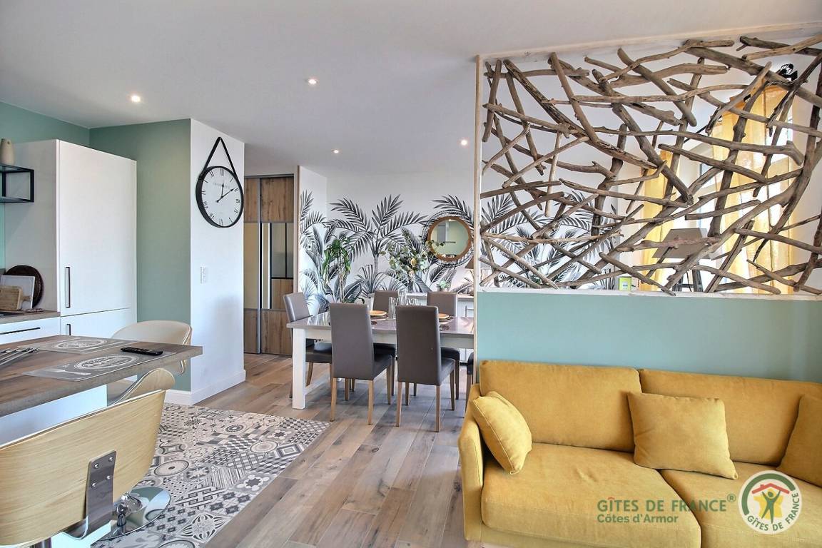 „Cette semaine a été parfaite à tous points de vue:- accueil chaleureux et professionnel de la part du propriétaire, disponible toute la semaine. Merci pour le panier d’accueil également de qualité ! - la décoration et l’équipement de l’appartement, de très grande qualité. La terrasse est un vrai plus avec le salon de jardin, par rapport à d’autres biens disponibles en location. - l’emplacement du logement: Entre Lannion et Morlaix, à 2 km de tous les commerces et les pieds dans l’eau. Plestin organise de nombreux événements durant l’été, ainsi que les communes à côté. La vue mer est incroyable, encore mieux que sur les photos de l’agence. À noter qu’en effet, il y a une route passante côté chambre mais alors que nous y étions à la période la plus dense de l’année, cela ne nous a pas du tout dérangé pour dormir car la nuit, la circulation se calme. Il n’y a pas non plus de bruit de l’appartement au dessus. Un très grand merci à Julien et sa famille, et à bientôt !“