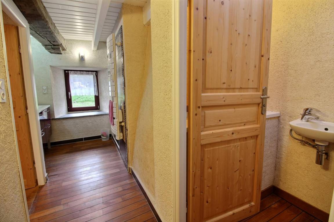 Erdgeschoss über wenige Stufen erreichbar: Wohnzimmer, Einbauküche und Aufenthaltsraum mit Pelletofen (ein Sack Pellets pro Woche angeboten), Waschküche mit Waschmaschine und Trockner über eine Stufe erreichbar.