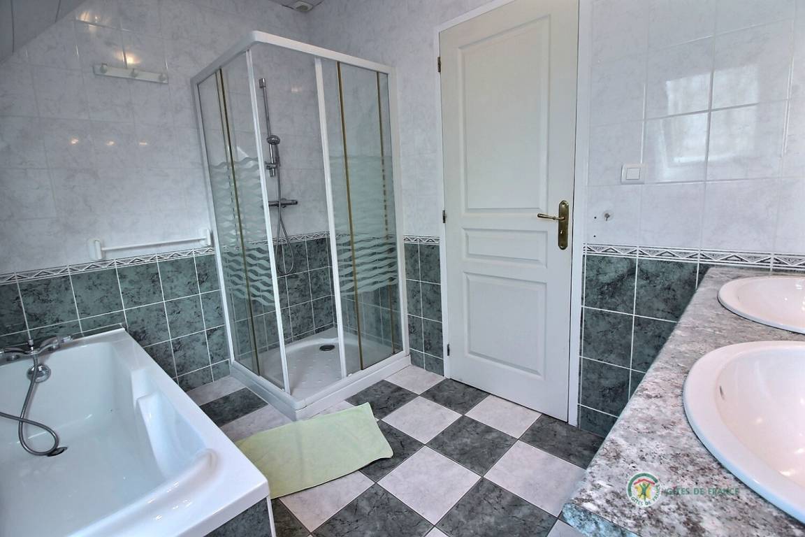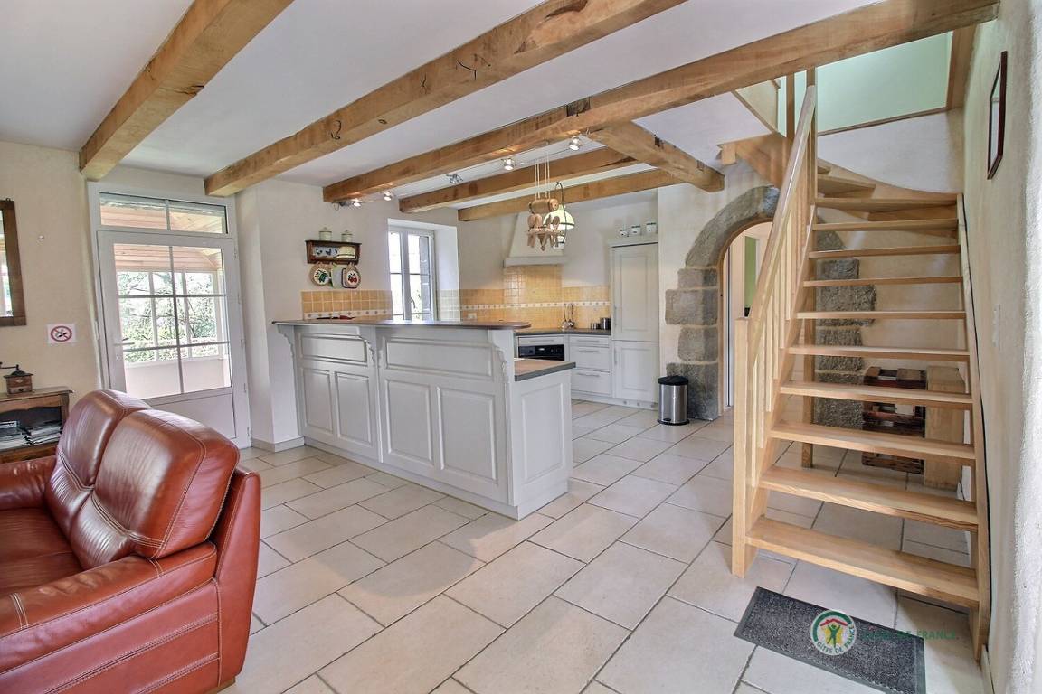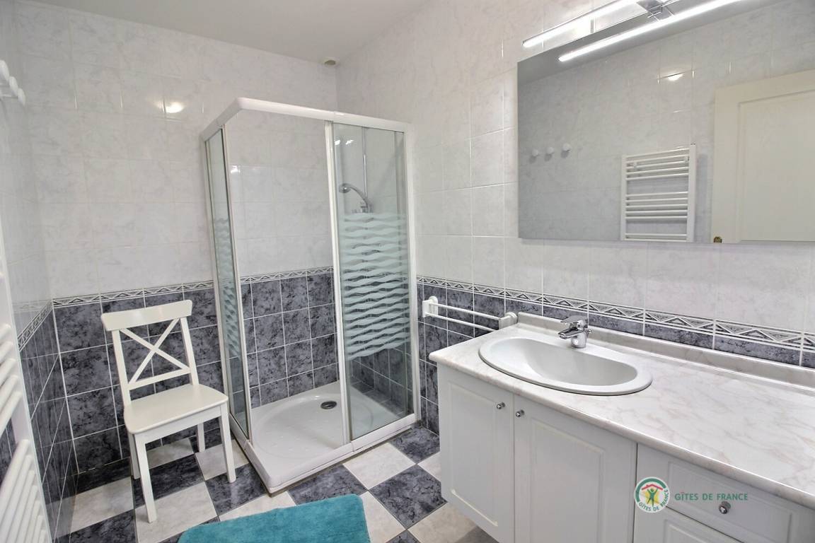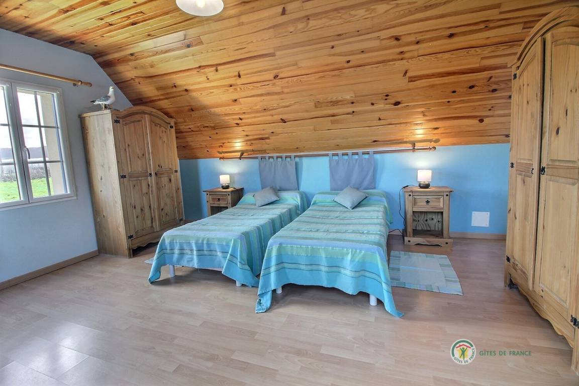 Ihre Ferienwohnung umfasst im Erdgeschoss: großes Wohnzimmer mit Küchenbereich - Esszimmer - Wohnzimmer (mit Kamin), 1 Schlafzimmer (1 Doppelbett), Badezimmer mit Dusche, WC. Obergeschoss: 3 Schlafzimmer (1 Doppelbett 160x200 und 4 Einzelbetten), Badezimmer mit Badewanne und Dusche, WC. Aerothermische Fußbodenheizung. Grundstück von 2000 m² mit Terrasse, Innenhof und Garten. Spiele für Kinder im Innen- und Außenbereich.