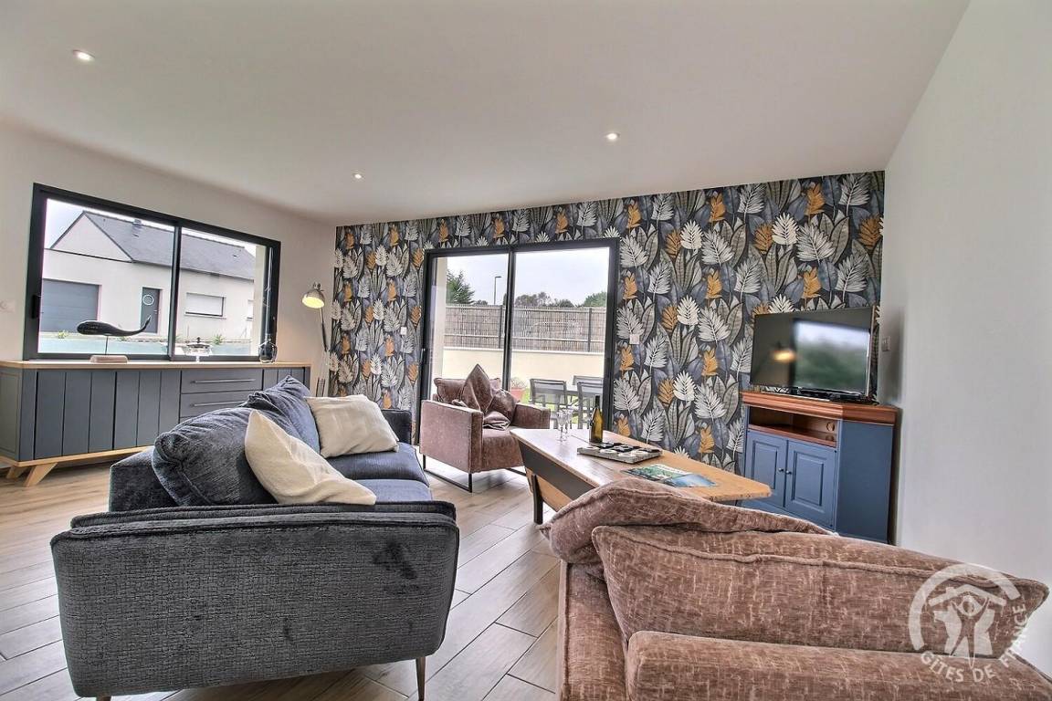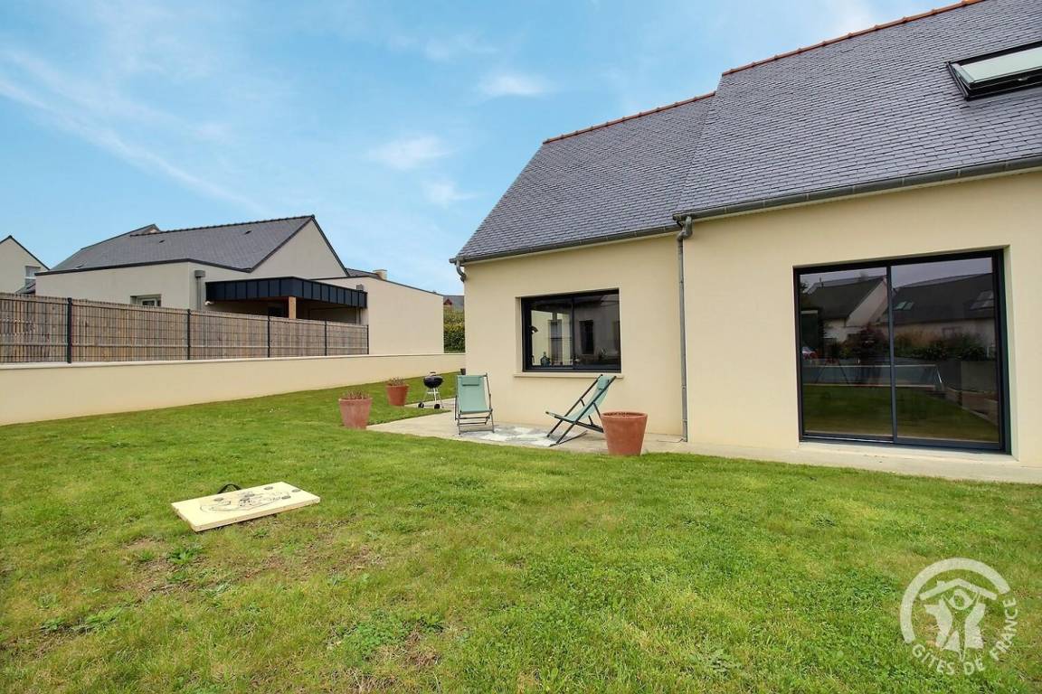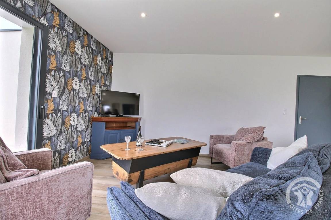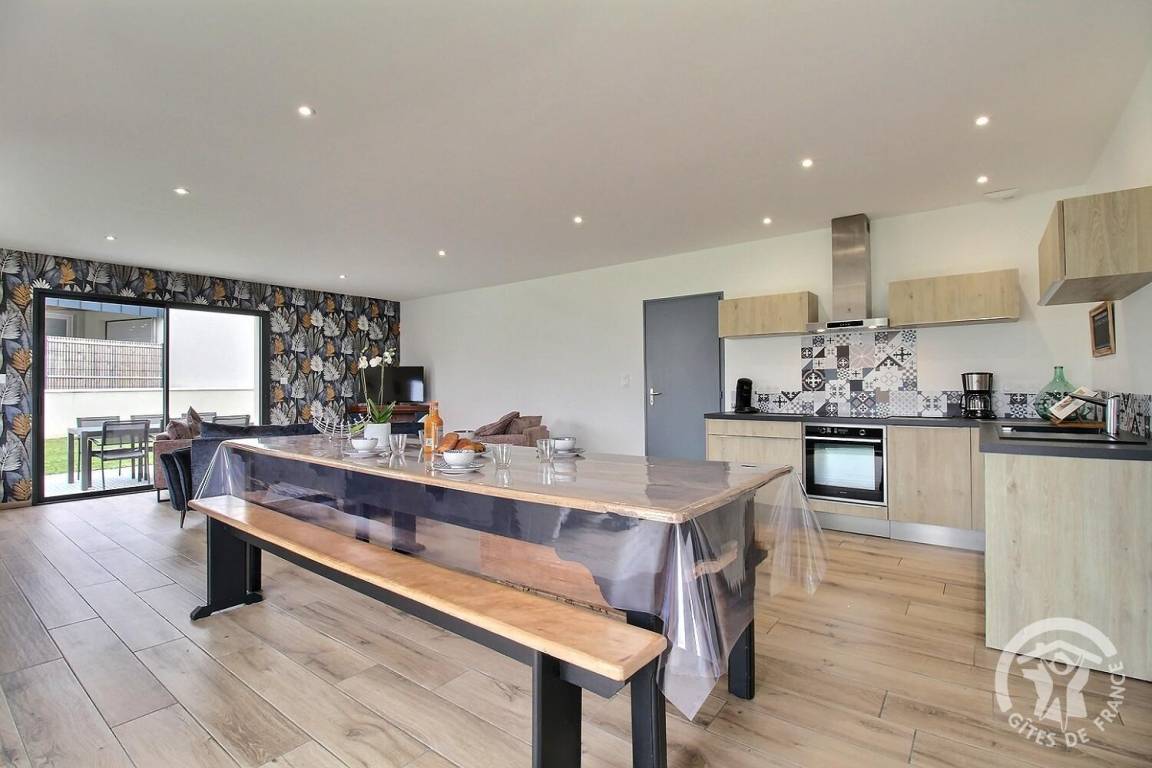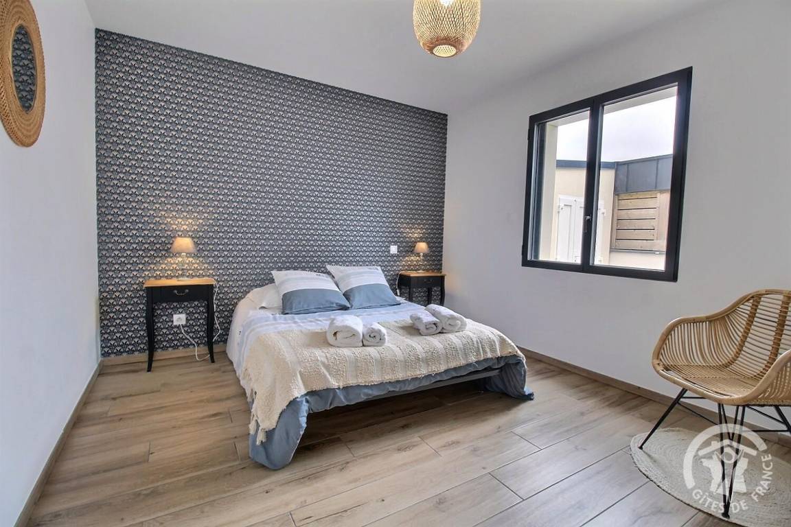 Ihre Ferienwohnung umfasst auf einer Ebene: ein großes Wohnzimmer mit Küchenzeile, eine Speisekammer/Waschküche (mit Kühlschrank mit Gefrierfach, Waschmaschine), 3 Schlafzimmer (1 Doppelbett 140X190) (1 Doppelbett 160X200) (2 Einzelbetten 80X200). kann auf vorherige Anfrage bei den Eigentümern kombiniert werden), ein Badezimmer mit großer italienischer Dusche und Waschbecken, eine separate Toilette. Babyausstattung auf Anfrage. Auf einem Grundstück von 609 m², unabhängiges, modernes Haus mit zementierter Terrasse von 15 m² nach Südwesten, Garten in Fertigstellung.
