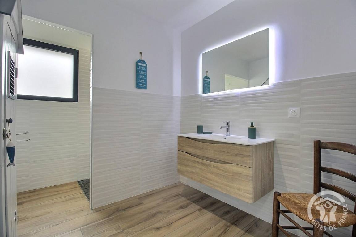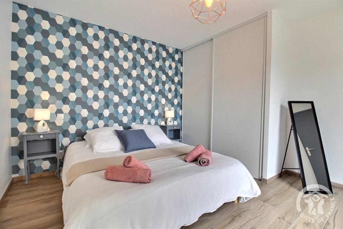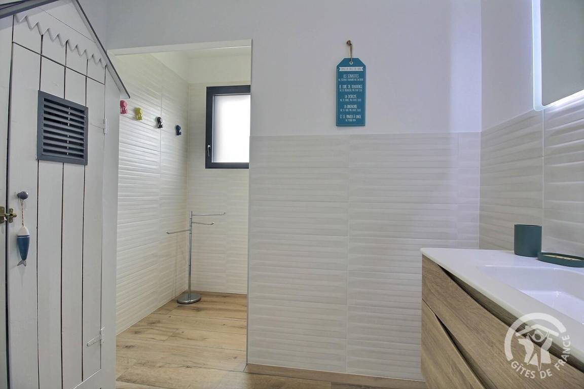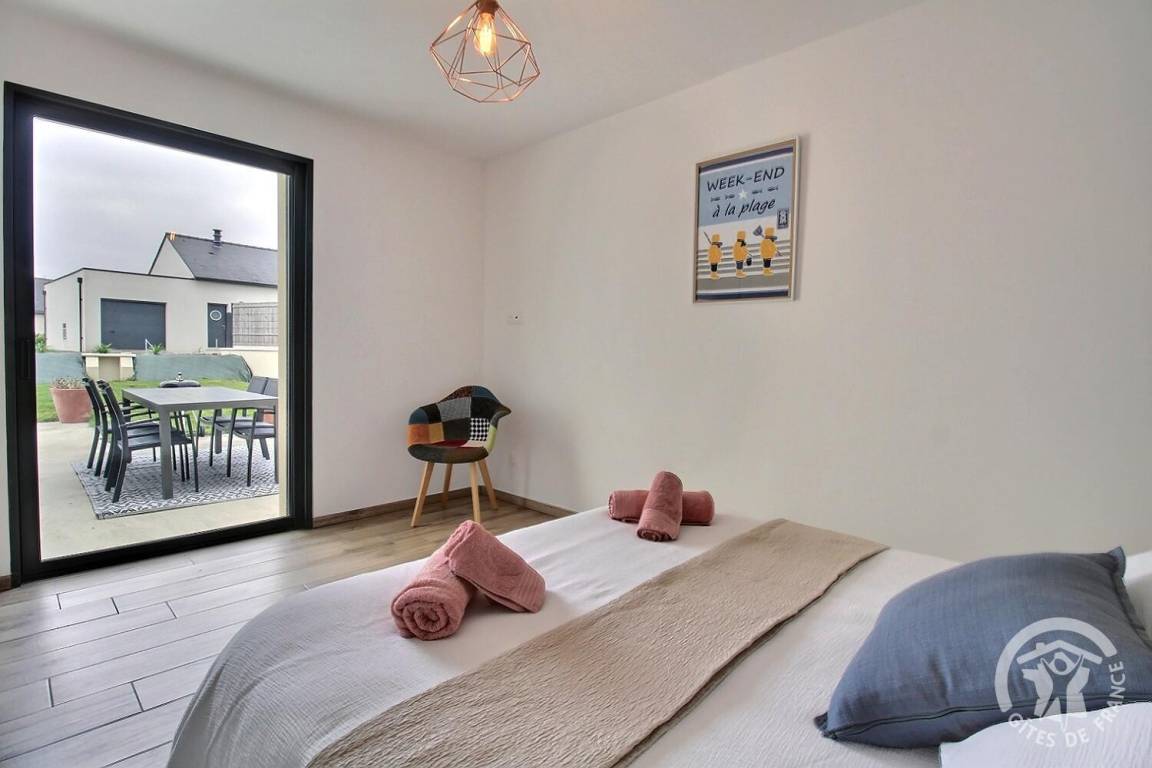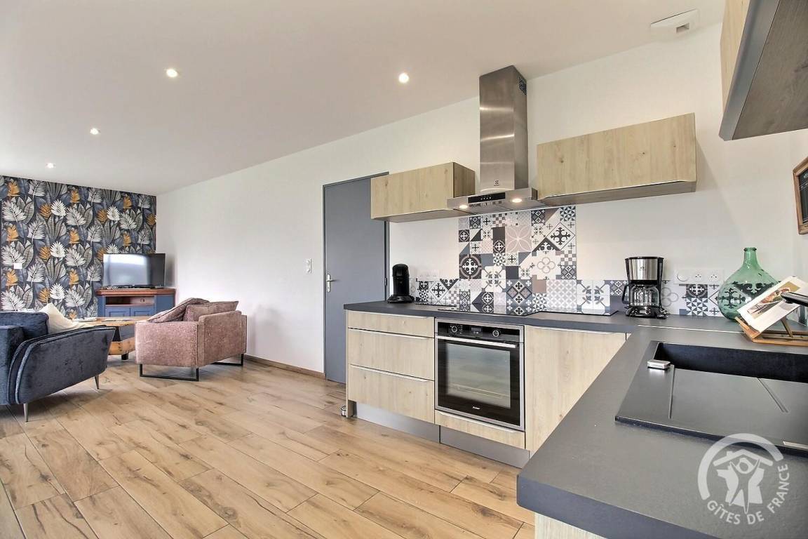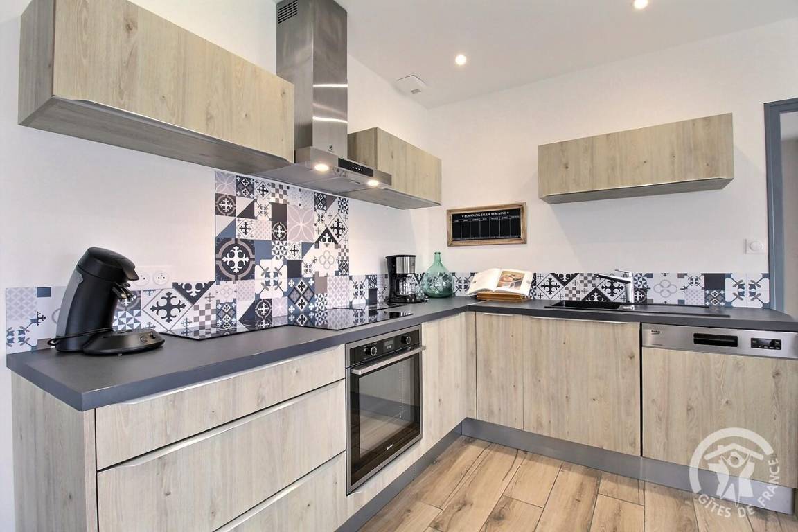 Ihre Ferienwohnung umfasst auf einer Ebene: ein großes Wohnzimmer mit Küchenzeile, eine Speisekammer/Waschküche (mit Kühlschrank mit Gefrierfach, Waschmaschine), 3 Schlafzimmer (1 Doppelbett 140X190) (1 Doppelbett 160X200) (2 Einzelbetten 80X200). kann auf vorherige Anfrage bei den Eigentümern kombiniert werden), ein Badezimmer mit großer italienischer Dusche und Waschbecken, eine separate Toilette. Babyausstattung auf Anfrage. Auf einem Grundstück von 609 m², unabhängiges, modernes Haus mit zementierter Terrasse von 15 m² nach Südwesten, Garten in Fertigstellung.