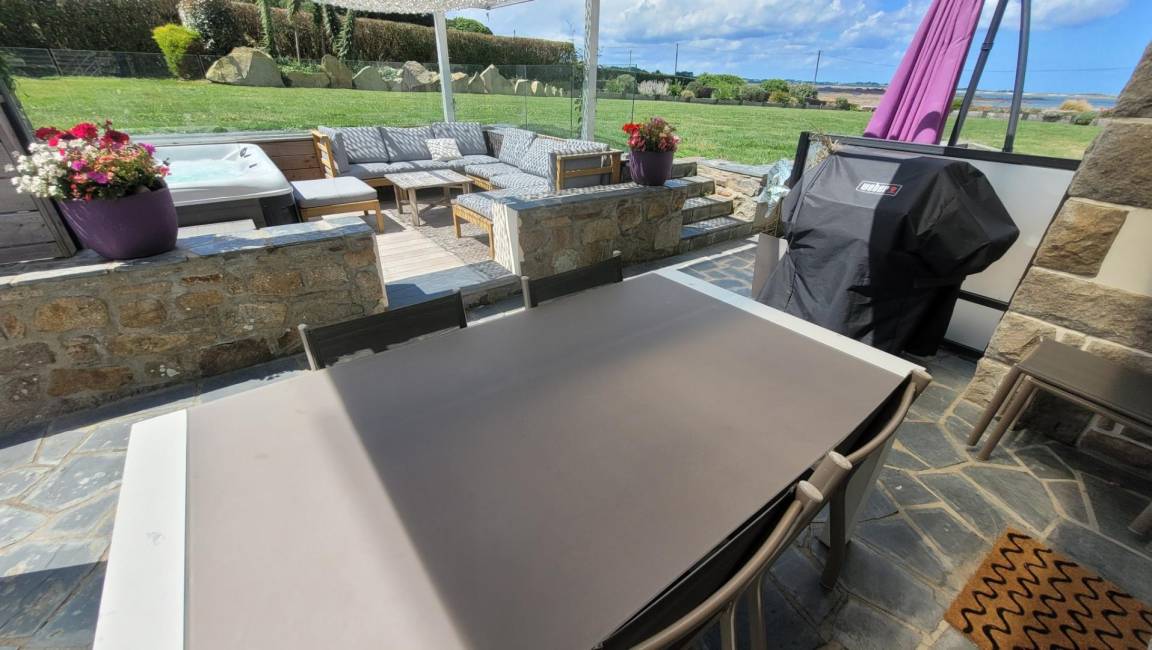 „Maison accueillante, espace idéale pour 6-7 personnes avec joli coin sur une terrasse avec jacuzzi. Vue fantastique sur la mer !Nous avons passé un détour parfait !“