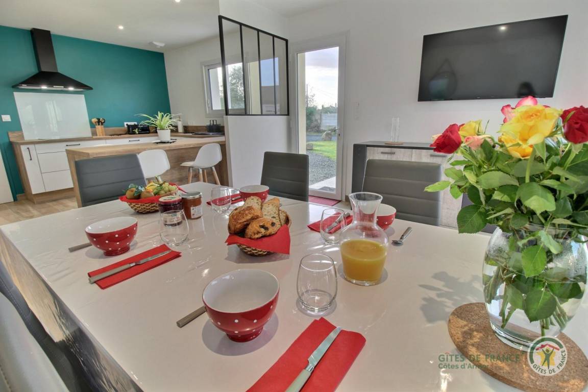 „Très belle maison récente à 400 mètres environ du Sillon de Talbert, très bien équipée, très soignée, beaucoup d'espace, pièce type buanderie suffisamment grande pour stocker les vélos (famille de 4 personnes). 4 emplacements pour manger ou prendre l'apéritif (îlot de la cuisine, table du salon, table extérieure, espace apéro-terrasse).“