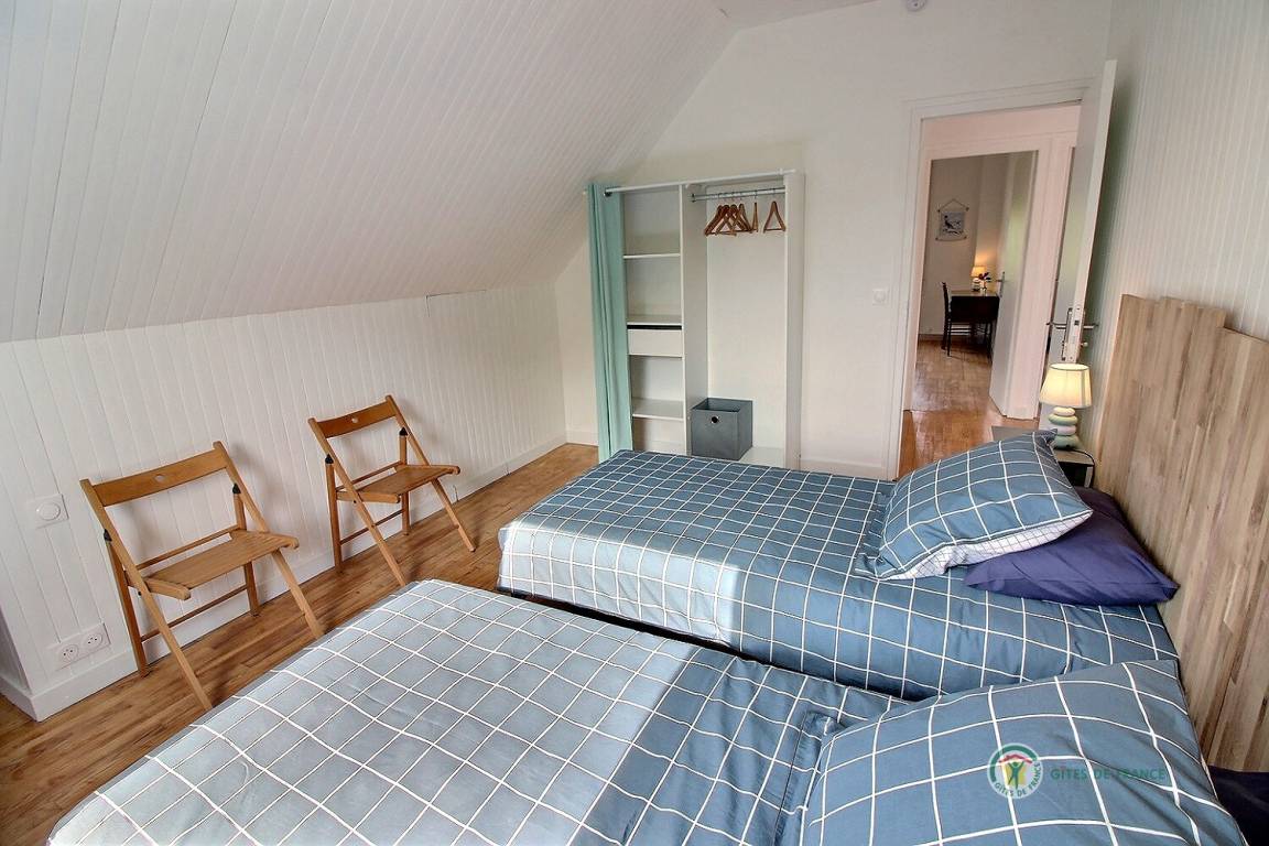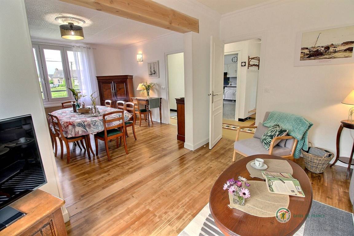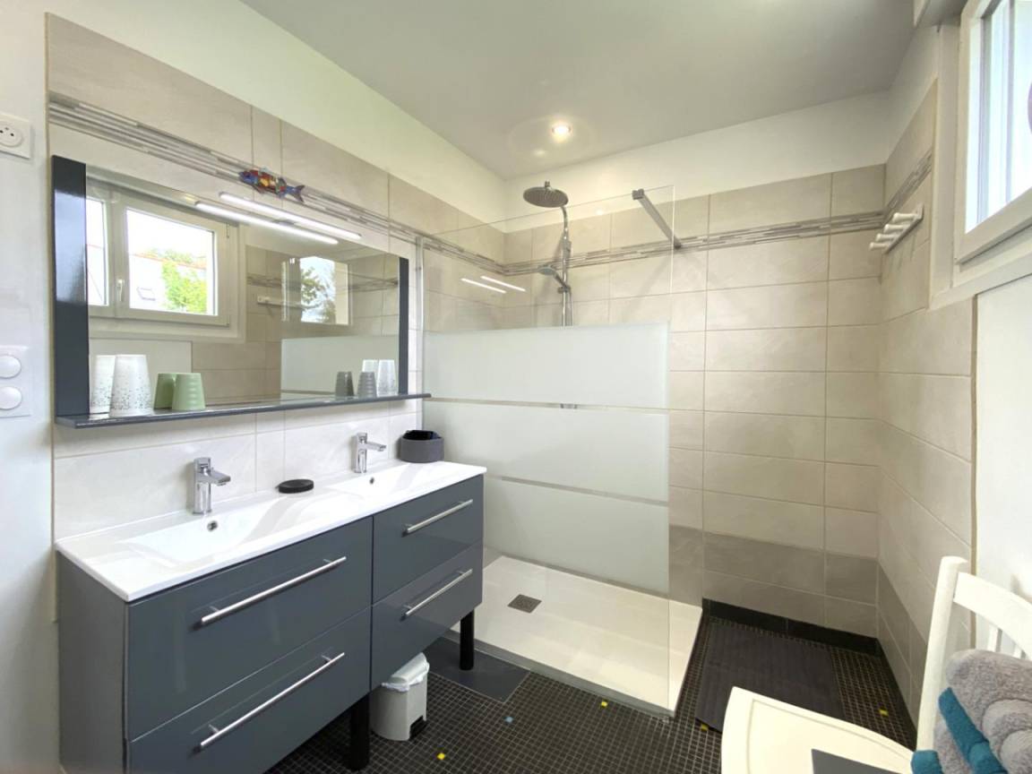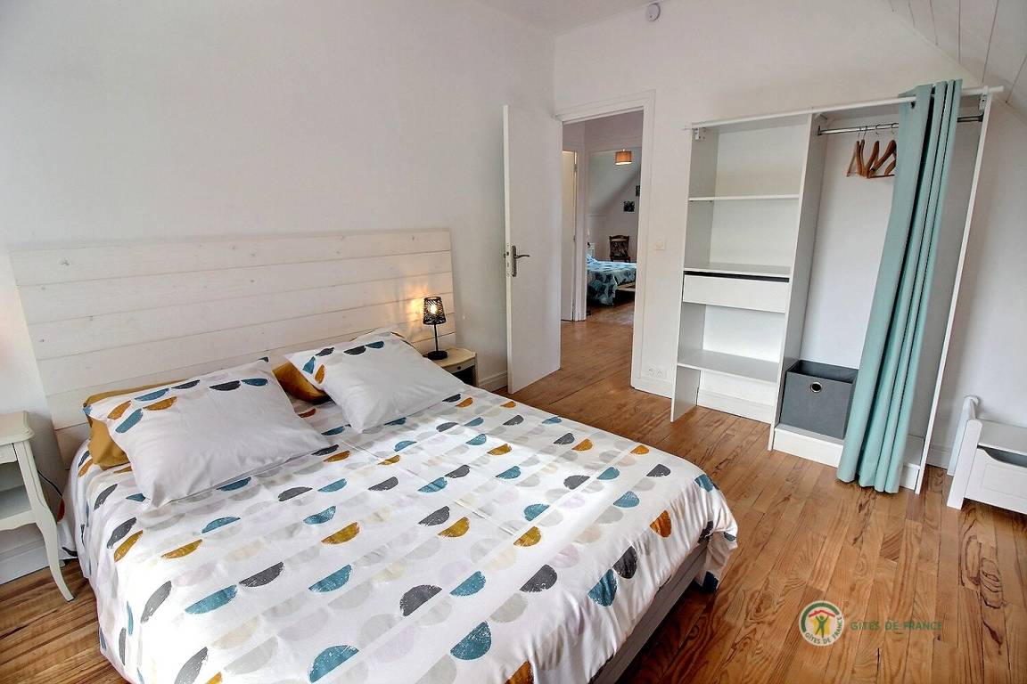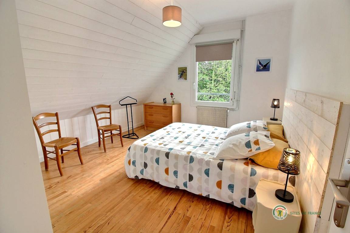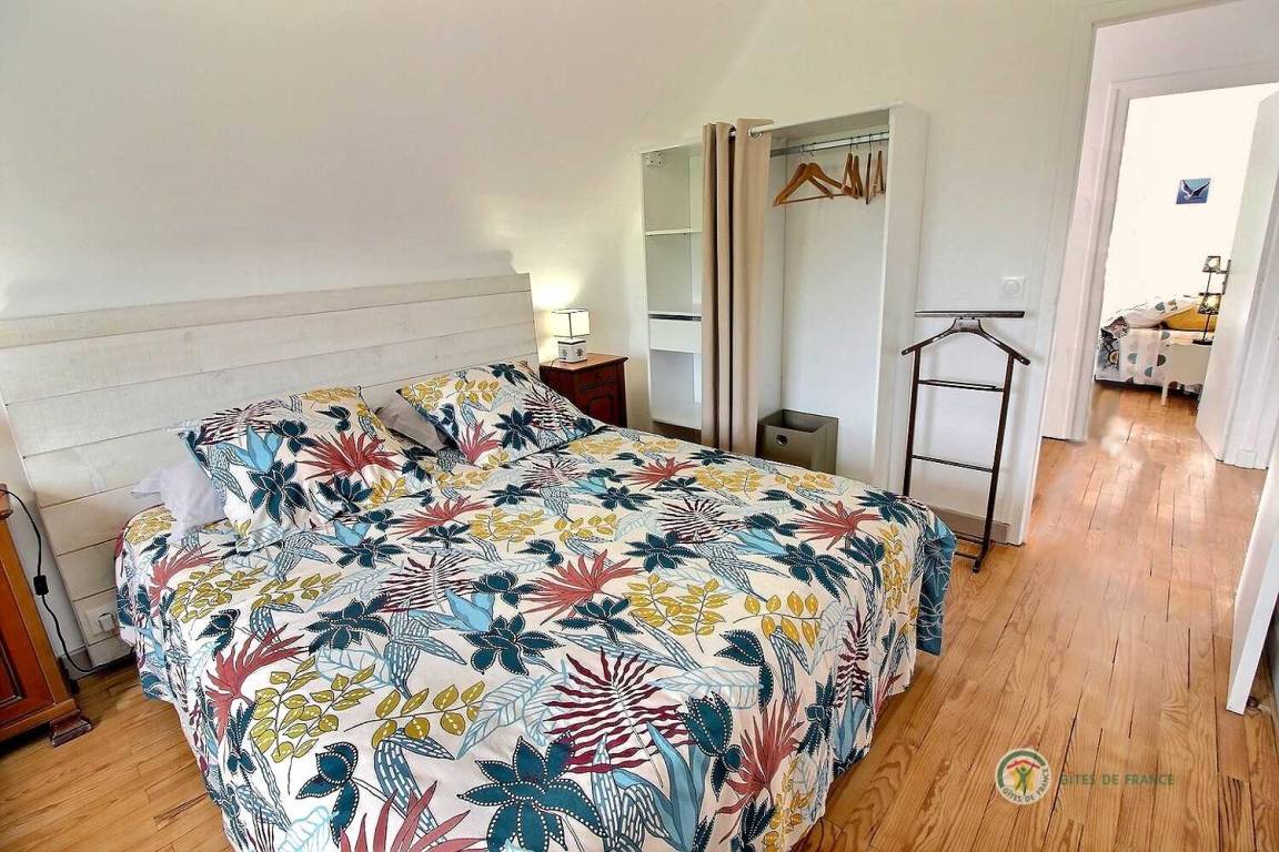 Ihre Ferienwohnung umfasst im Hochparterre: eine große Eingangshalle, eine Einbauküche, ein Wohnzimmer, ein Badezimmer mit Dusche, eine separate Toilette. Obergeschoss: 4 Schlafzimmer mit 1 160x200-Bett, 2 140x190-Betten und 2 90x190-Betten, Badezimmer mit Dusche und WC. Ein großer Garten von 650 m², eine windgeschützte Holzterrasse von 30 m². Parkplatz für 2 Autos auf dem Grundstück.
