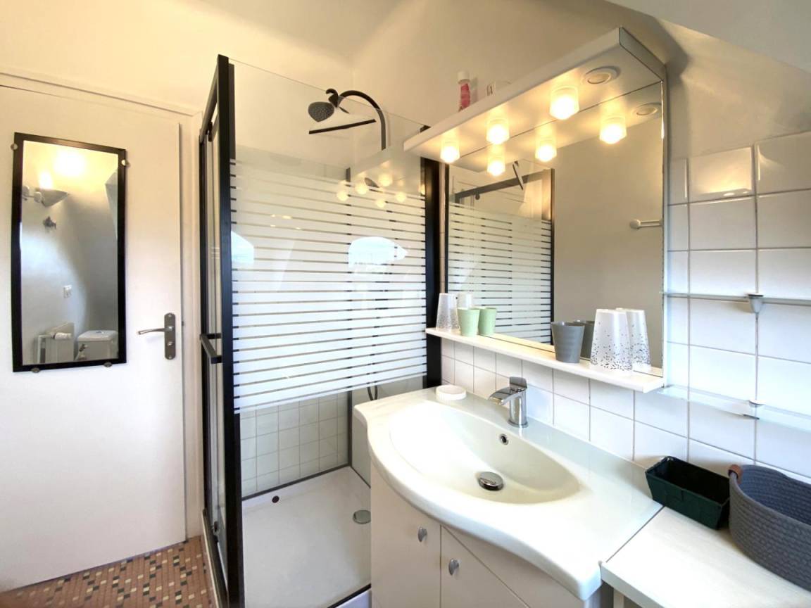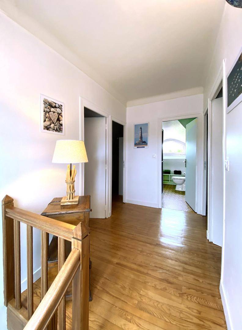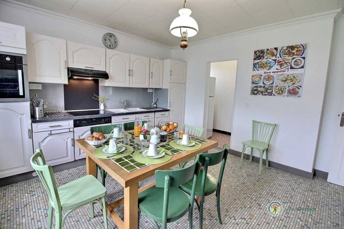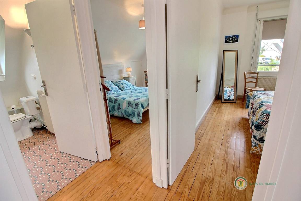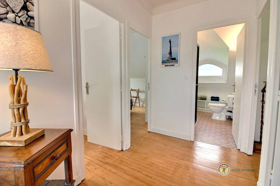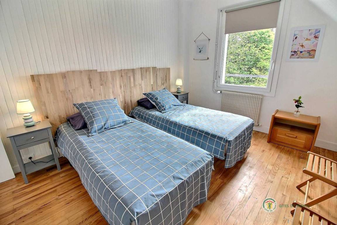 Ihre Ferienwohnung umfasst im Hochparterre: eine große Eingangshalle, eine Einbauküche, ein Wohnzimmer, ein Badezimmer mit Dusche, eine separate Toilette. Obergeschoss: 4 Schlafzimmer mit 1 160x200-Bett, 2 140x190-Betten und 2 90x190-Betten, Badezimmer mit Dusche und WC. Ein großer Garten von 650 m², eine windgeschützte Holzterrasse von 30 m². Parkplatz für 2 Autos auf dem Grundstück.