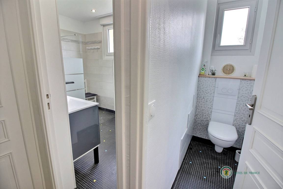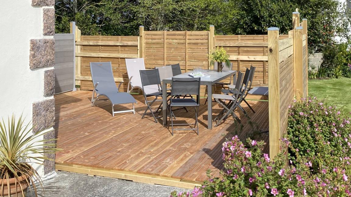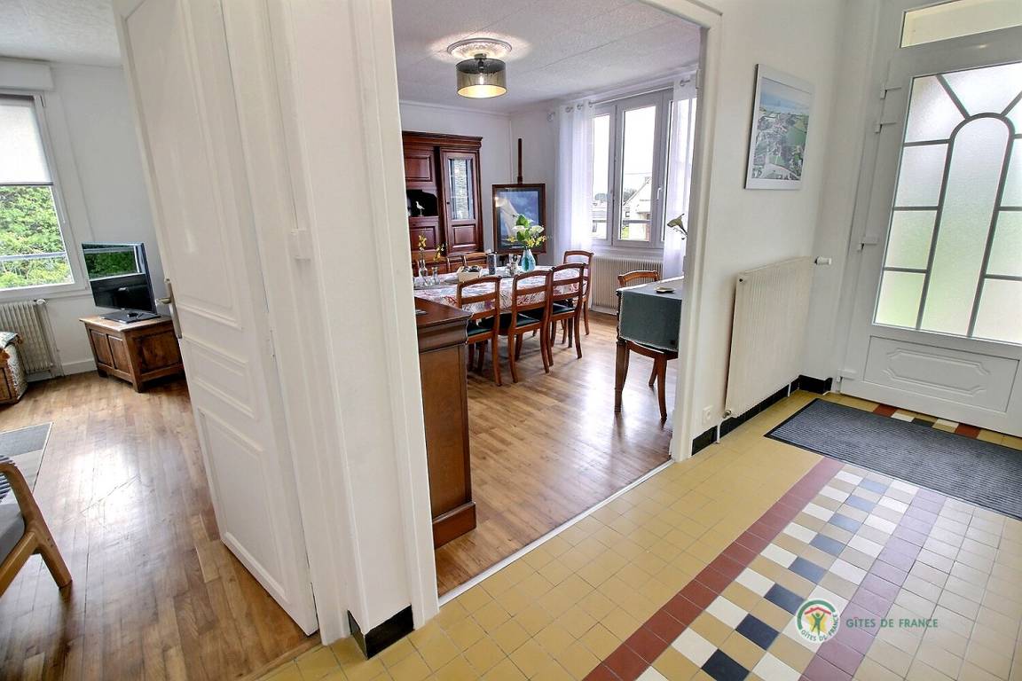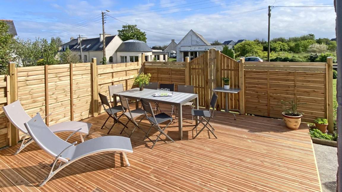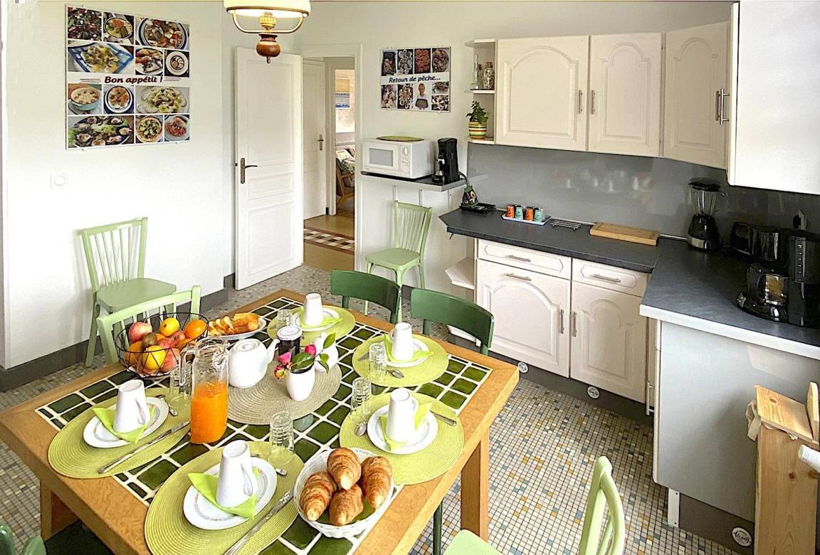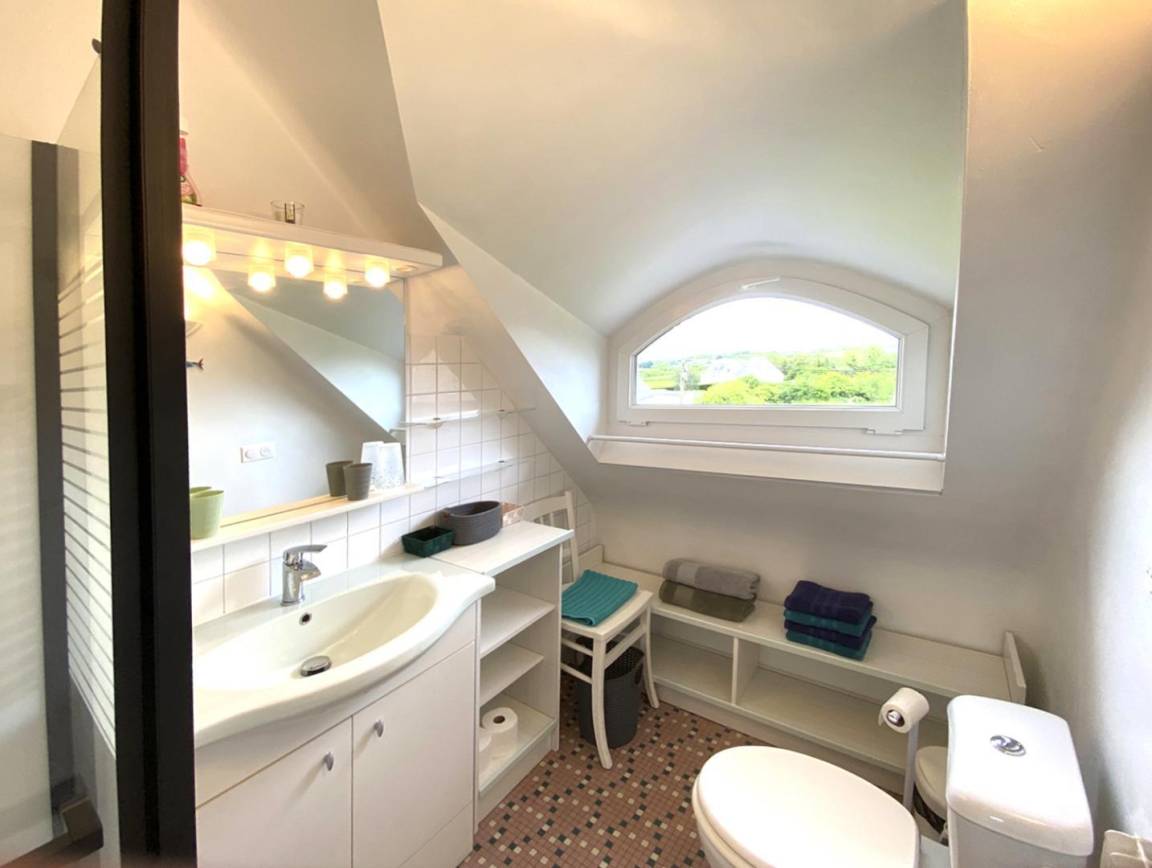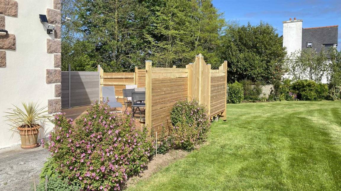 Ihre Ferienwohnung umfasst im Hochparterre: eine große Eingangshalle, eine Einbauküche, ein Wohnzimmer, ein Badezimmer mit Dusche, eine separate Toilette. Obergeschoss: 4 Schlafzimmer mit 1 160x200-Bett, 2 140x190-Betten und 2 90x190-Betten, Badezimmer mit Dusche und WC. Ein großer Garten von 650 m², eine windgeschützte Holzterrasse von 30 m². Parkplatz für 2 Autos auf dem Grundstück.