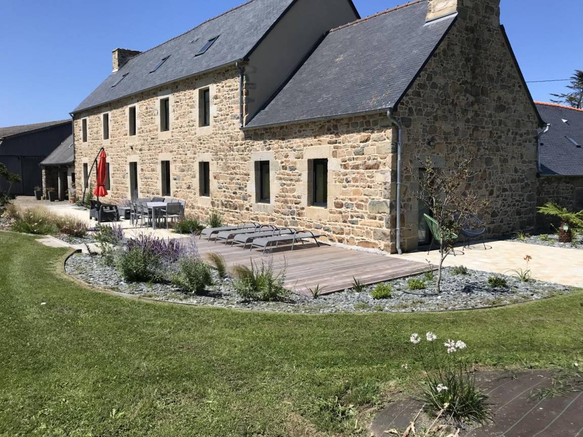 „Super gepflegtes Haus auf großem Grundstück mit großer Terrasse- sehr netter Empfang durch Danielle (danke nochmals für die leckeren Tomaten und Gastgeschenke).Guter Ausgangspunkt für die rosa Granitküste & Île de Brèhat. Sehr zu empfehlen!“