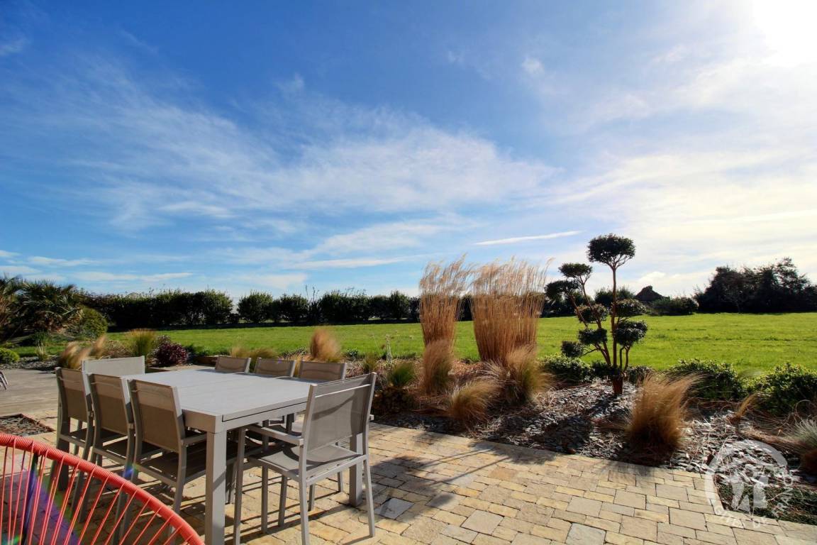 Ihre Ferienwohnung umfasst im Erdgeschoss: eine Wohnküche, eine Lounge, eine Waschküche, ein Schlafzimmer (1 Bett 160x200, das auf Wunsch geteilt werden kann) mit Ankleideraum und eigenem Bad, eine Toilette mit Waschbecken. Im 1. Stock: 1 Schlafzimmer mit einem 160x200 Bett, Ankleideraum und eigenem Bad. Gekieste Terrassenfläche von 40 m², Innenhof von 500 m² und Rasen von 3000 m² frisch bepflanzt. Kinderspiele im Freien (Molky, Bälle, schlechtes Netz und Volleyball). Carport für 2 Fahrzeuge. Abstellraum für Ihre Ausrüstung (Kinderwagen, Surfbrett, Fahrräder, Paddel etc.). Telearbeitsplatz in einem Schlafzimmer eingerichtet.