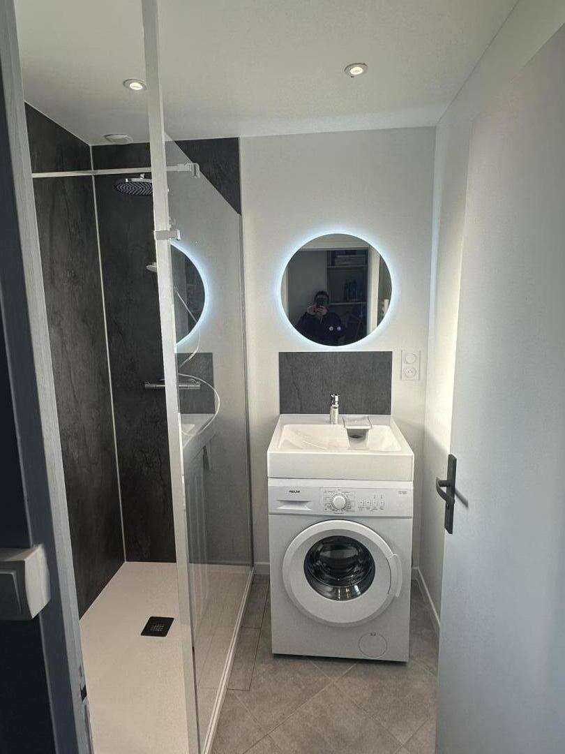 - Badezimmer mit Dusche (das im März erneuert wird, neues Aussehen für April 2025),
