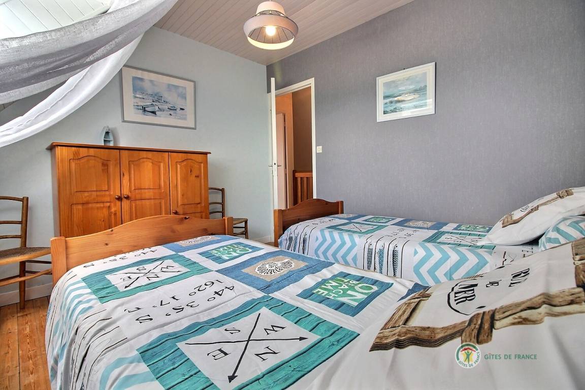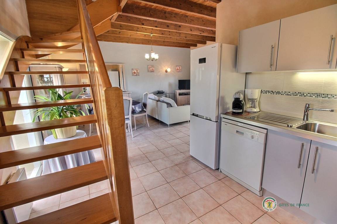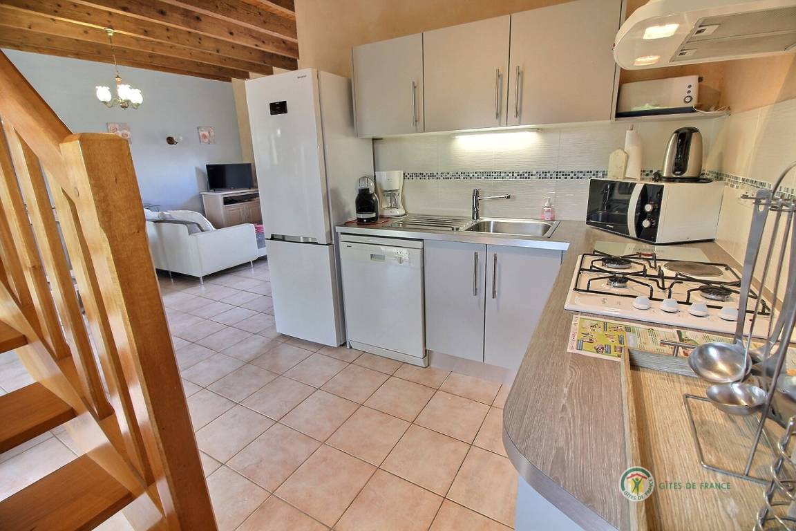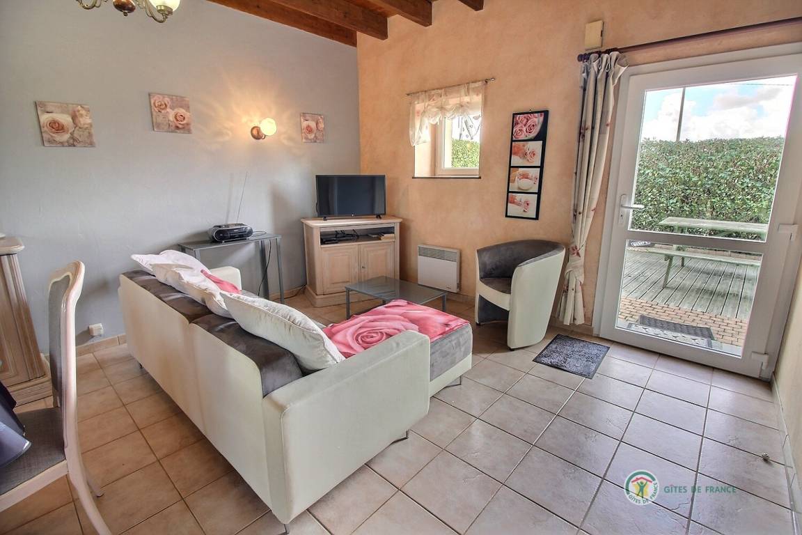 3 renovierte Gites, Doppelhaus in einem Ensemble, in einer ruhigen Umgebung, mit seperatem Eingang, 500 m von einem Bauernhof gelegen. Erdgeschoss: Wohnzimmer mit eingebauter Küche und Essecke (37 qm), WC. Etage: 2 Schlaf-Zi. (1 Doppelbett, 2 Einzelbetten, 1 Kinderbett aus Holz), Bade-Zi. mit WC. Hof (60 qm) und Rasen von 500 qm. Bettwäsche vorhanden, Betten werden bei Ankunft bezogen. Babystuhl.