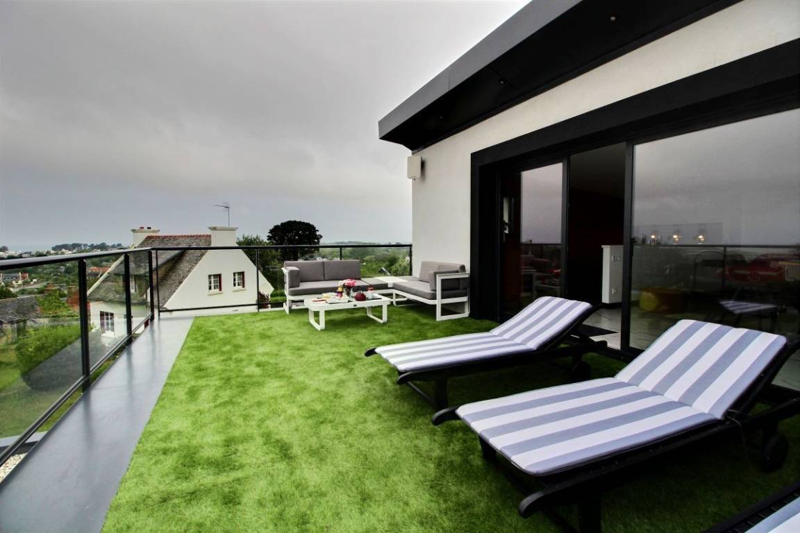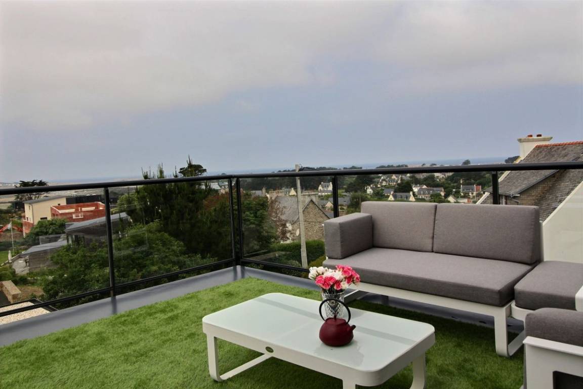 „Nous avons passé un agréable séjour dans cette villa accueillante et très bien équipée. La vue est magnifique et tout est pensé, organisé pour un confort optimal. Le quartier est très calme et le logement permet de bien profiter de la côte bretonne même si la météo se montre capricieuse. Merci à notre hôte pour sa gentillesse.“