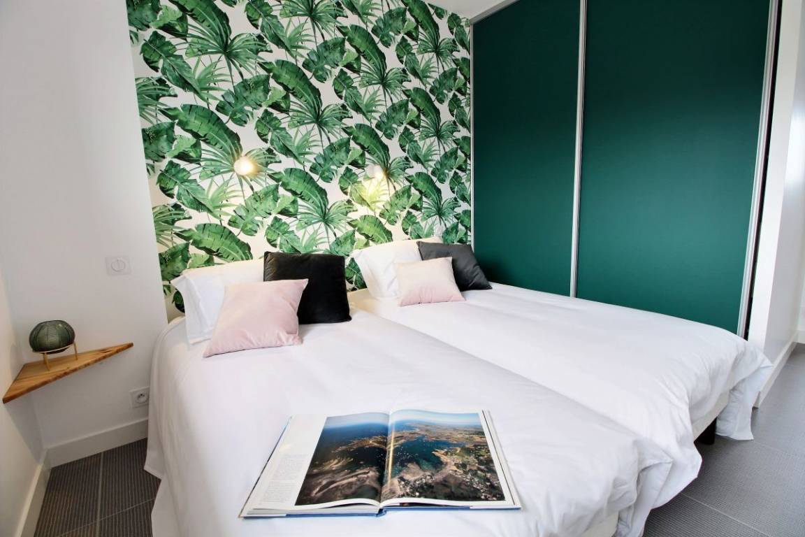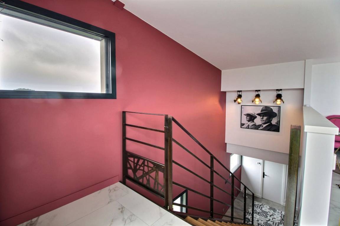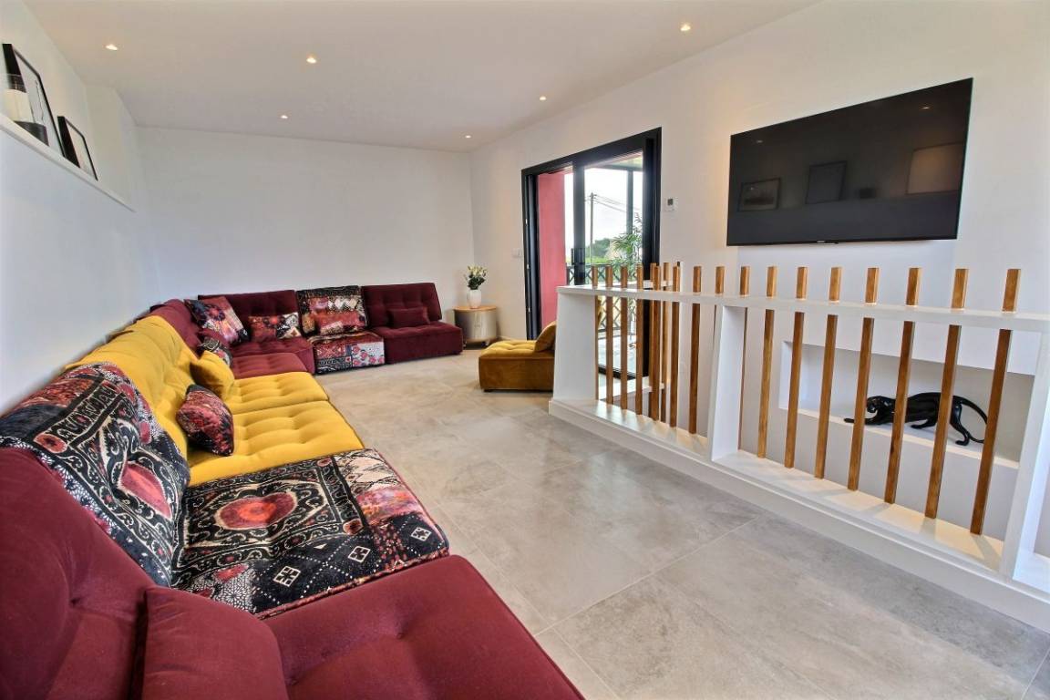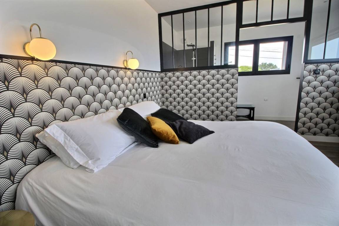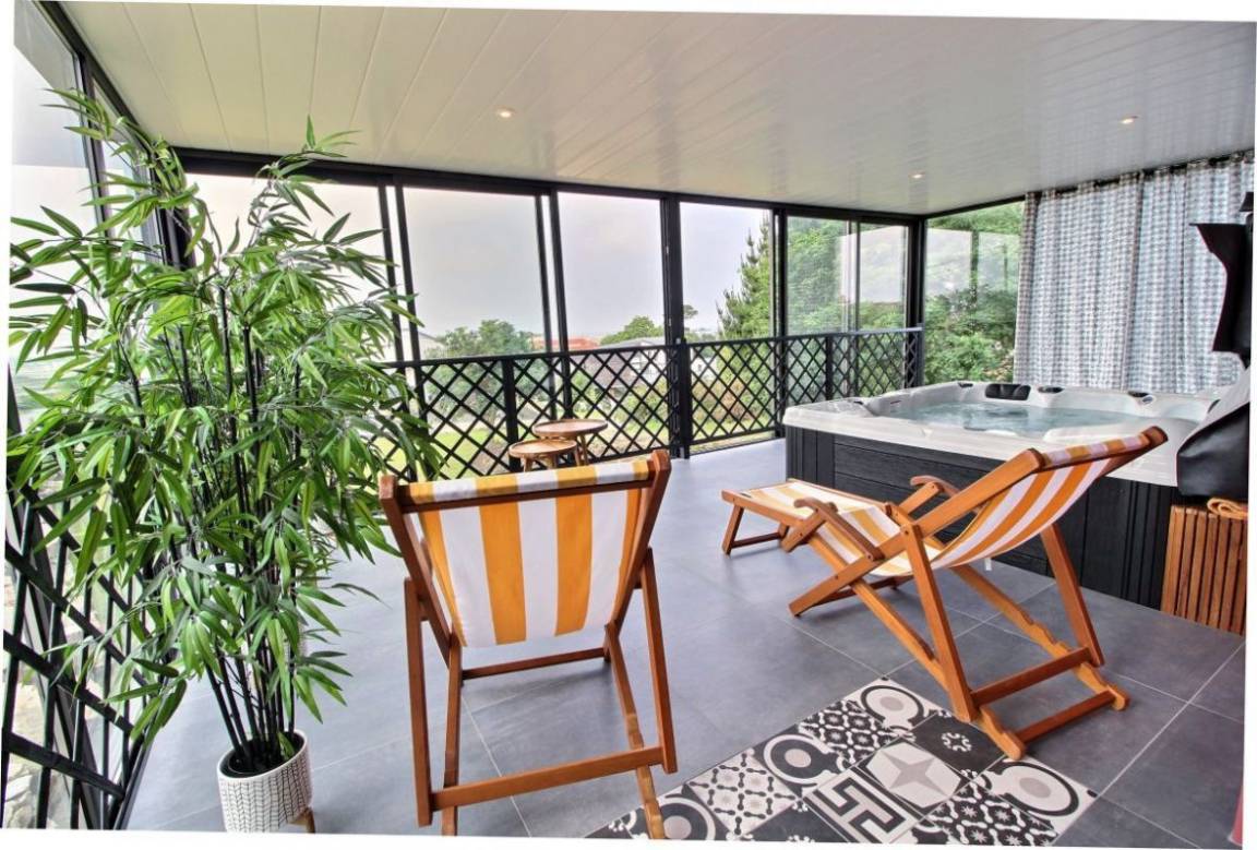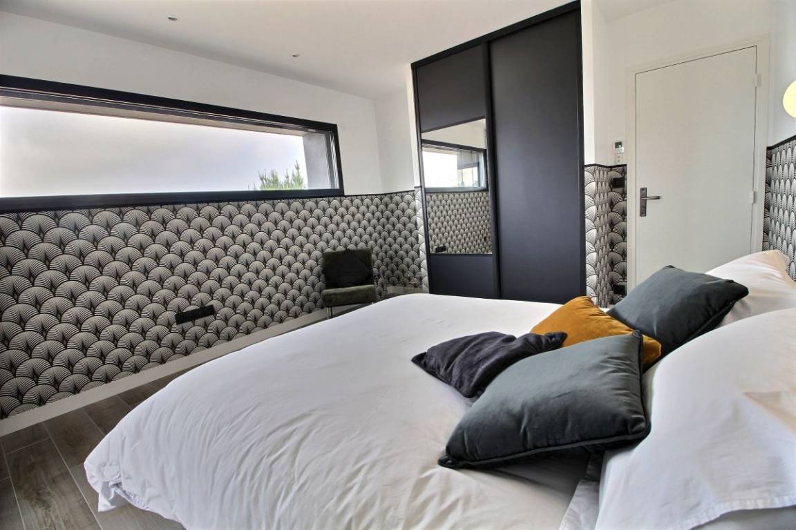 Ihre Villa umfasst im Erdgeschoss: Eingangshalle, 2 Schlafzimmer (4 Einzelbetten 90x200), Badezimmer mit Dusche, eine Master-Suite (1 Doppelbett 160x200), wo Sie das Badezimmer zu schätzen wissen Schlafbereich durch ein Glasdach. 1. Stock: Eine schöne Metalltreppe und Eichenstufen führen zu einer Küche und einem Wohnzimmer, von wo aus Sie das Meer betrachten können ... Von diesem Raum aus haben Sie Zugang zu 2 Terrassen. Einer nach Osten, windgeschützt. Der 2., nach Westen ausgerichtet, mit Kunstrasen zur Entspannung bedeckt. Auf Ebene - 1: ein großes, sehr gemütliches Wohnzimmer. Von diesem Raum gelangen Sie auf die Veranda mit dem 6-Sitzer-Spa, umgeben von großen Erkerfenstern. Im Erdgeschoss: Badezimmer mit Dusche und Badewanne, WC, Waschküche, ein großes Schlafzimmer (1 Doppelbett 180x200, das in zwei Betten 90x200 umgebaut werden kann) mit direktem Zugang zu einer Holzterrasse und dem 1000 m² großen Garten. Großer gepflasterter Privatparkplatz. Geschlossener Raum für Fahrräder.