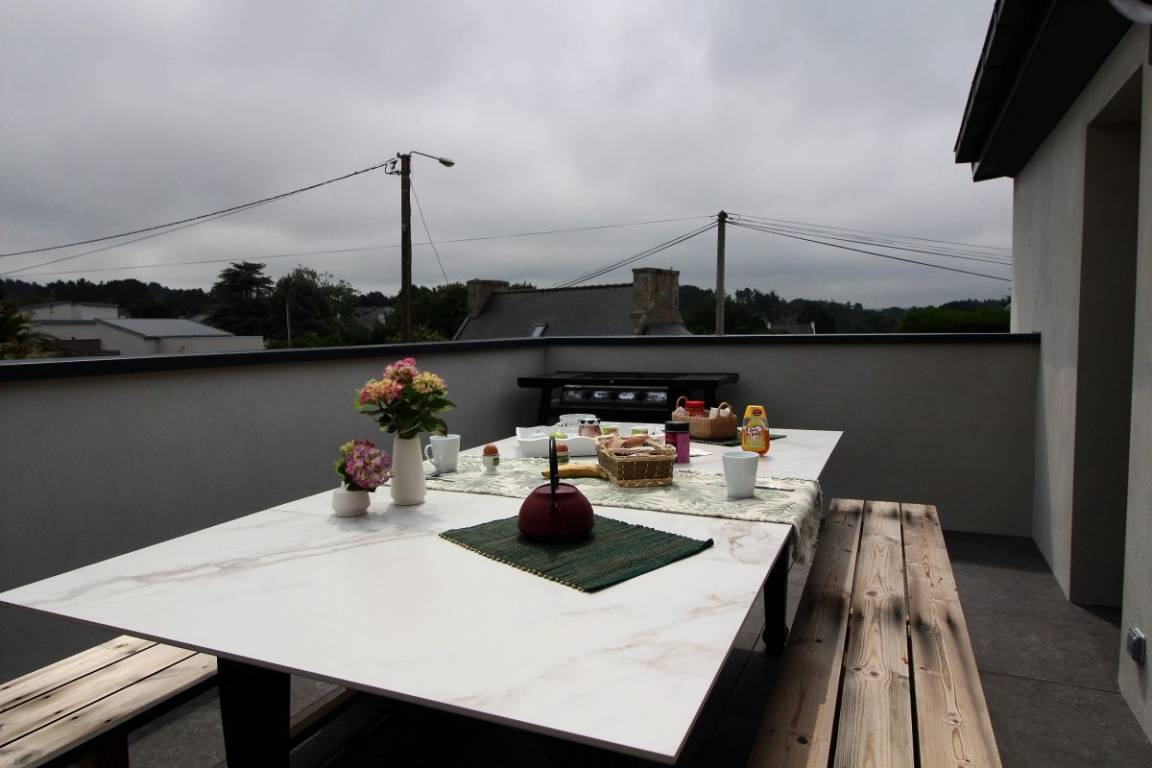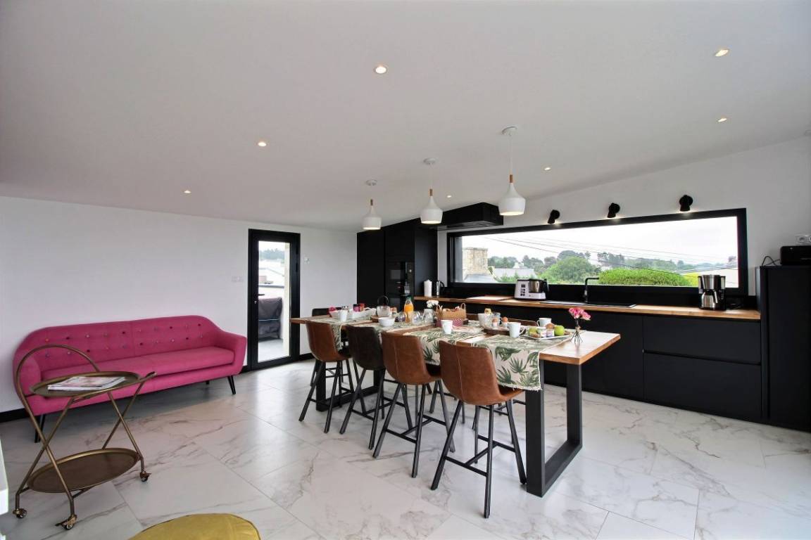 „Idéalement situé pour visiter et profiter de la côte de granit Rose, le gîte est moderne, spacieux, et les équipements et matériaux de haute qualité. Nous remercions les propriétaires pour leur accueil chaleureux, leur disponibilité et les excellentes adresses. Et le must est la vue exceptionnelle de la pièce à vivre et de la terrasse, digne d'une carte postale. Nous recommandons vivement.“