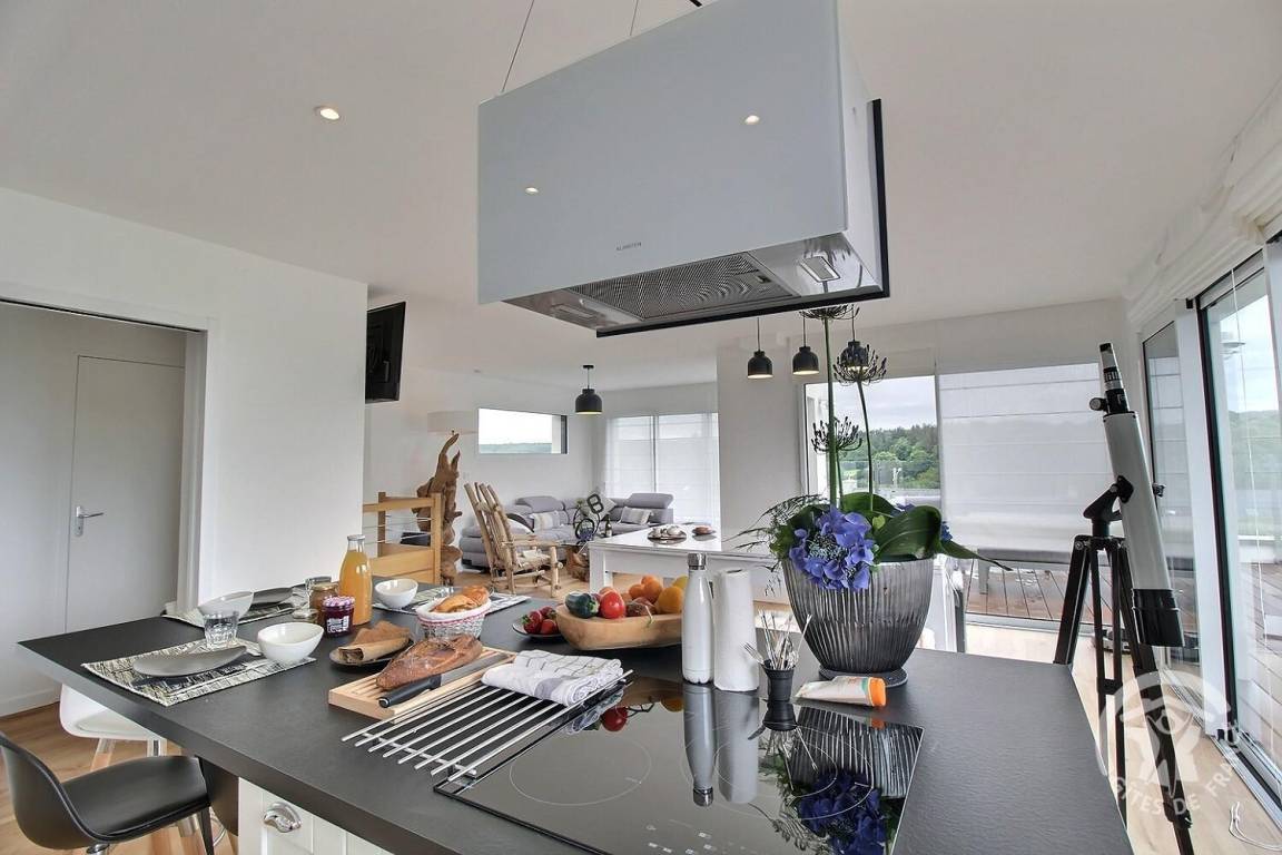 „Jolie maison neuve inversée avec jolie vue mer. Chambres spacieuses, grande pièce à vivre baignée de lumière. Endroit charmant et très calme. Propriétaire très à l'écoute. Vous pouvez y aller les yeux fermés.“