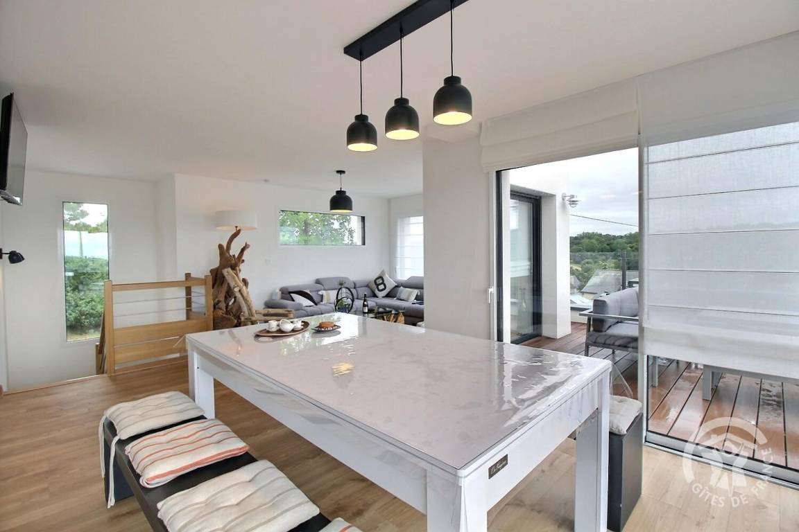 Weniger als 4 km von Pleumeur Bodou entfernt wird Sie dieses neu erbaute Haus mit seinem hellen Wohnzimmer, seiner gemütlichen Dekoration und seinen trendigen Möbeln verführen. Öffnen Sie die Fenster und Sie gelangen auf die Terrasse, wo Sie auf den Liegestühlen herrlich entspannen können. Und an klaren Tagen haben Sie sogar Meerblick!