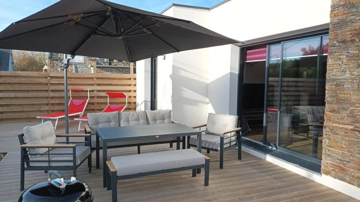 „Nous avons passé une excellente semaine dans ce gîte à la fois très beau et très confortable. Le plan de cette maison est parfait pour 3 ou 4 personnes: Belles chambres, 2 salles de bain confortables, une très grande et lumineuse pièce de vie, une buanderie très pratique à l'entrée. Bravo aux propriétaires pour la qualité de la déco et des finitions!La terrasse sud-ouest est très agréable et là aussi le mobilier est très soigné. A pied, les plages et chemins côtiers de Landrellec sont à 15 minutes. Enfin, les propriétaires sont tout à fait charmants“