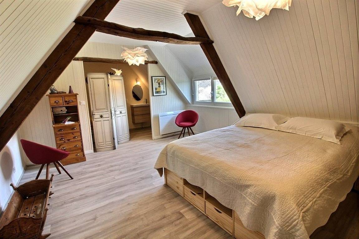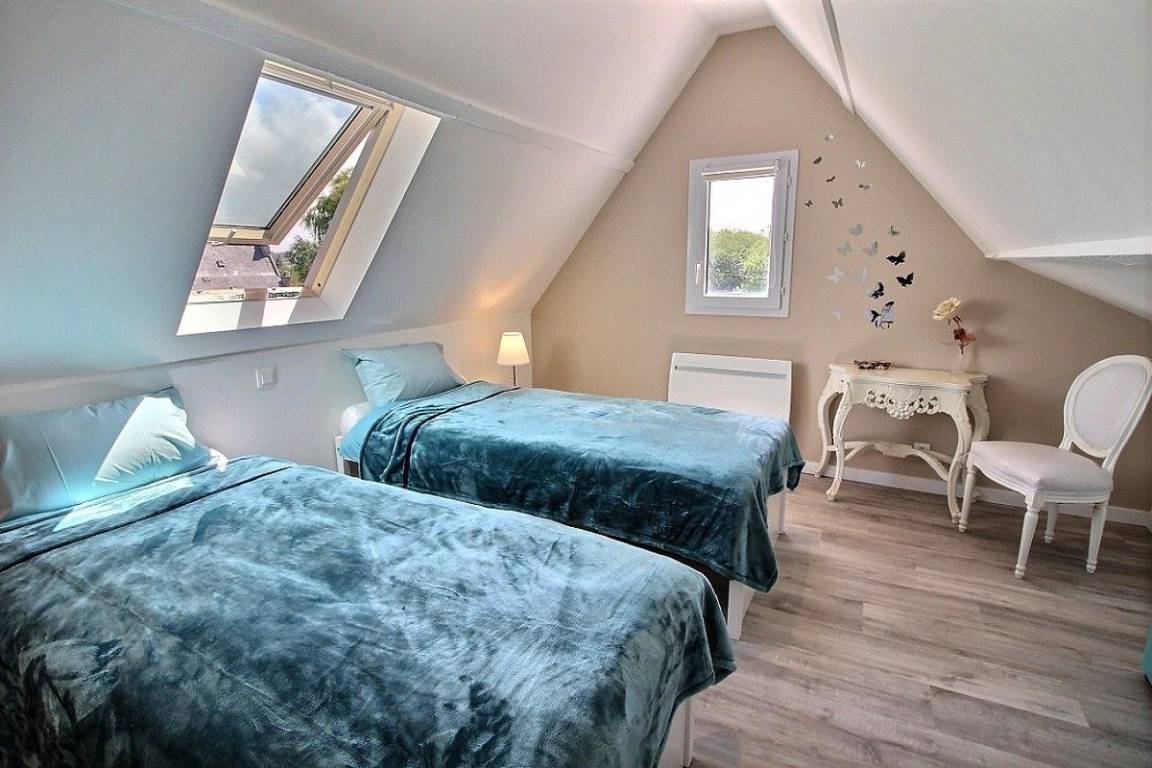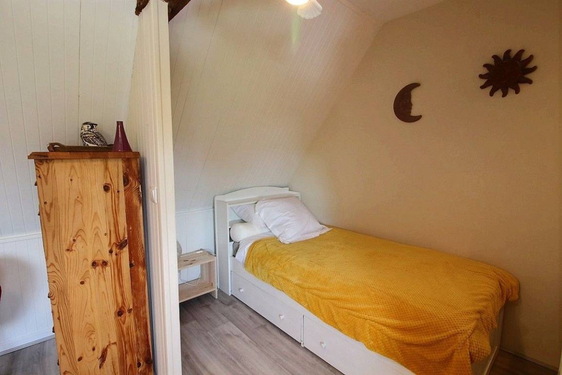 - Etage: ein Schlafzimmer (1 160x200-Bett), ein Schlafzimmer (3 90x200-Betten mit Telearbeitsplatz).