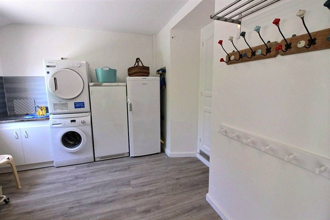 - Erdgeschoss: Küche, Wohnzimmer. Über eine Stufe gelangt man in das Wohnzimmer, Schlafzimmer (1 Doppelbett 140x190) mit eigenem Bad (Dusche und WC), separates WC, Veranda mit Spielen für Kinder, Bad mit Dusche, Waschküche über eine Stufe erreichbar.