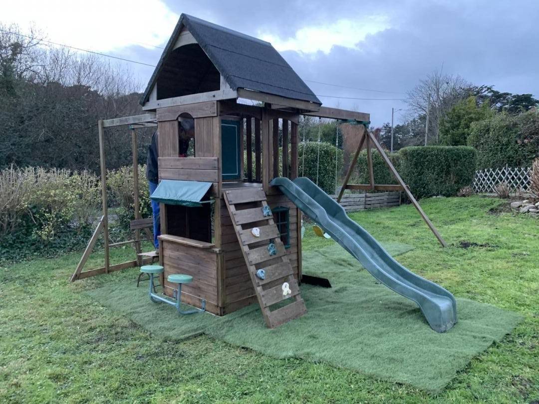- Außenbereich: privater Innenhof und Garten mit Holzkonstruktion für Kinder.