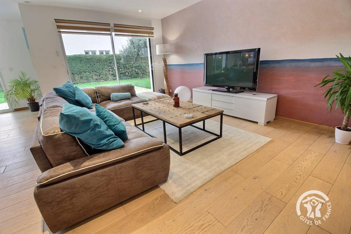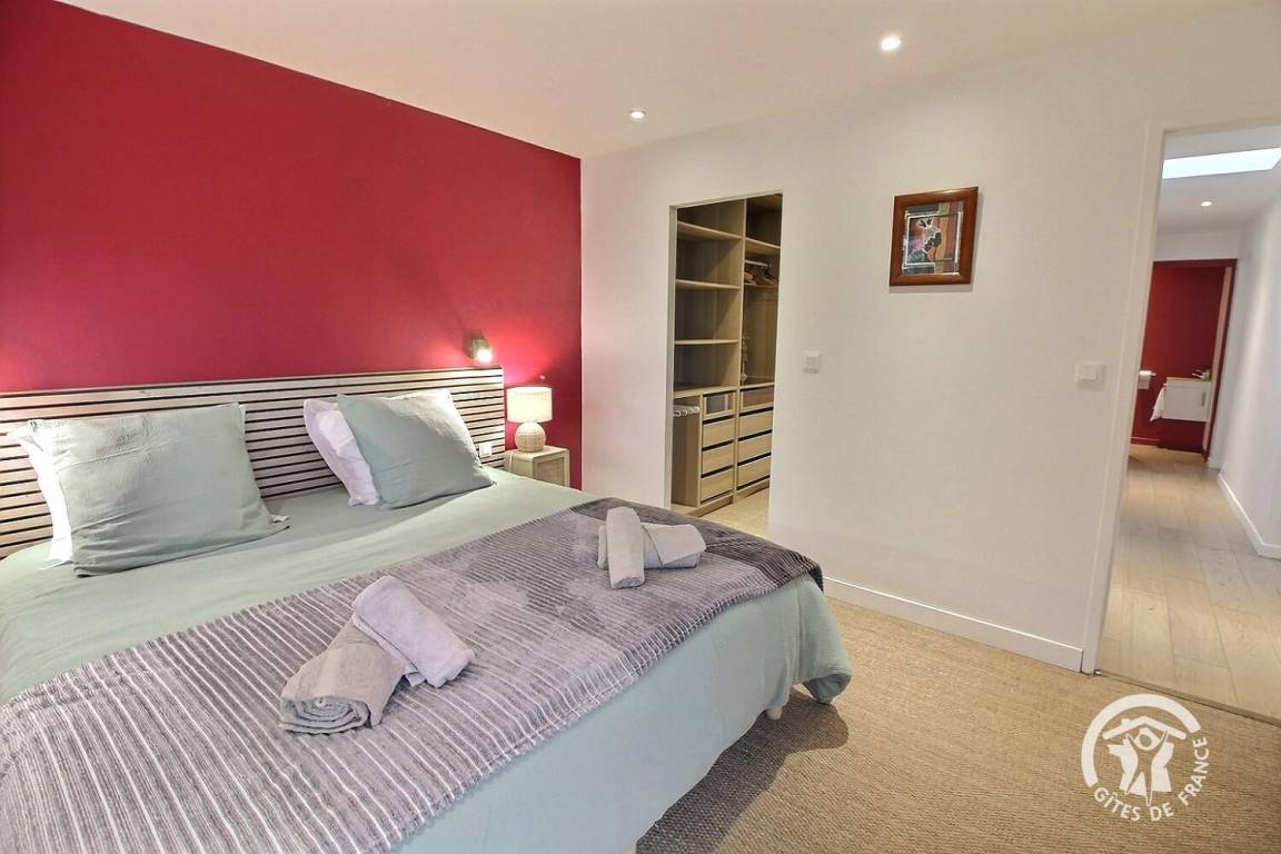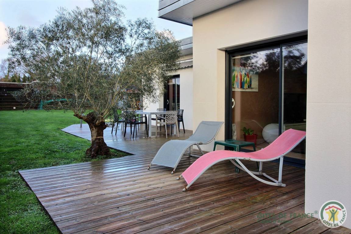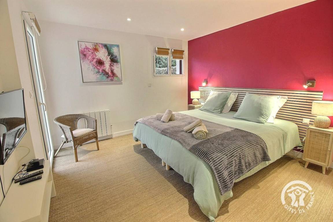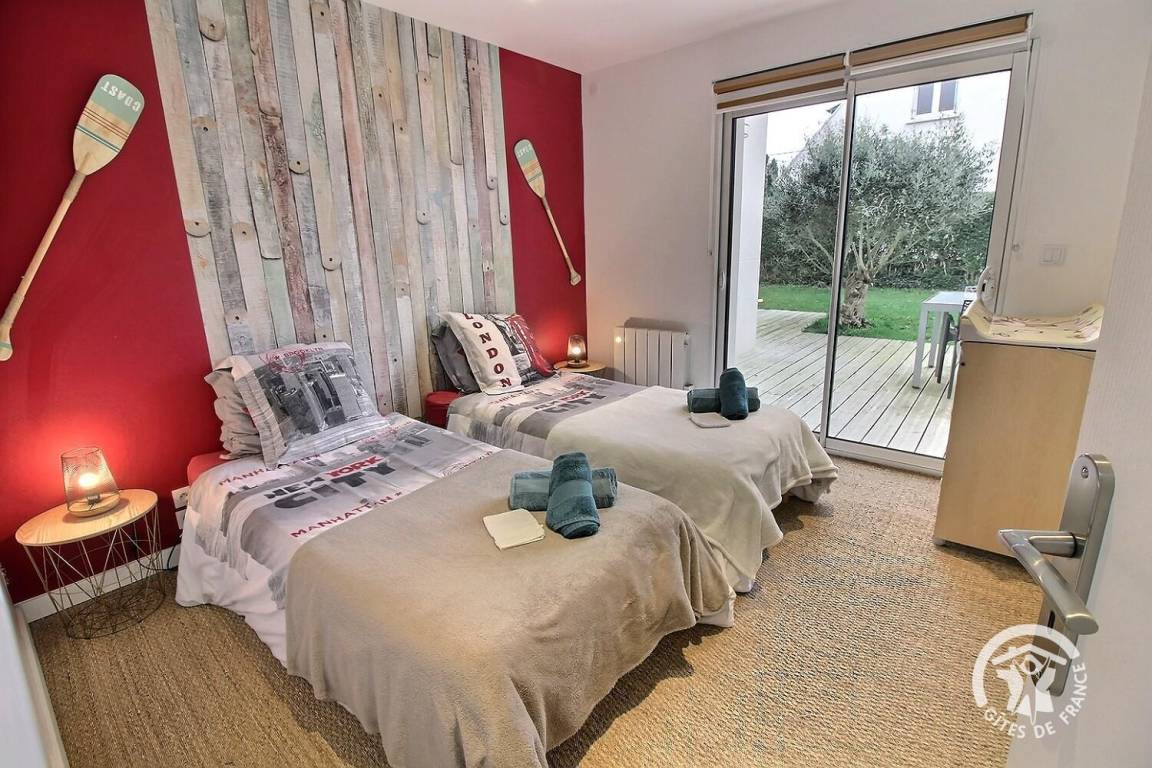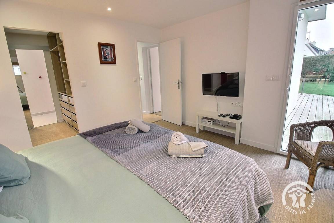 Ihre Ferienwohnung umfasst auf einer Ebene: ein großes Wohnzimmer mit Pelletofen (mitgeliefert) und Küchenbereich, eine Master-Suite (1 Schlafzimmer mit 1 180x200-Bett - das geteilt werden kann - mit TV, ein Ankleidezimmer, das zu seinem Badezimmer führt, Wasser -Dusche, Waschbecken-), ein Schlafzimmer (1 Bett 180x200 - teilbar-), ein Schlafzimmer (2 Betten 90x200 - trennbar-), ein großes Badezimmer mit Dusche und Waschbecken, eine Toilette mit Waschbecken, eine Waschküche /Abstellraum, eine angrenzende Garage (Fahrzeug, Motorrad(er), Ausrüstung etc.). Viele Spiele vor Ort (Tischtennisplatte, Badminton-Kit, ...). Lesungen und Gesellschaftsspiele für alle. Komplette Babyausstattung vor Ort. Ihr Mietobjekt ist nach Südwesten ausgerichtet, was Ihnen tagsüber und abends ein schönes Licht ermöglicht. 400 m² eingezäunter Garten, der das Haus umgibt, mit nach Westen ausgerichteter Holzterrasse von 80 m² und Innenhof von 120 m², bequem zum Parken.