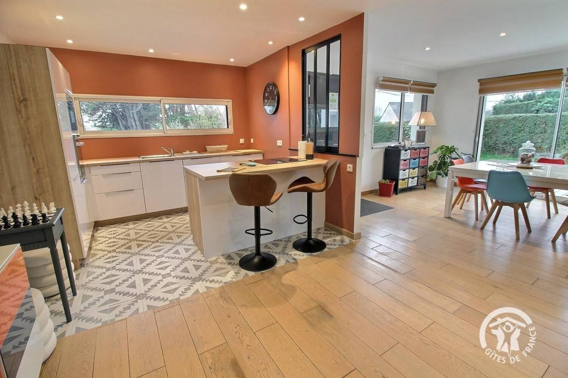 „Wir haben 2 Wochen mit 2 Personen in diesem Ferienhaus verbracht. Bereits bevor wir das Haus betreten haben, wurde klar, dass es nicht gepflegt ist. Der Fußabtreter bestand nur noch aus Gummi, die Applikationen auf der Eingangstür waren rostig. Das große Wohnzimmer mit Küche war schmuddelig und seltsam riechend. Unter der Decke viele Spinnweben, diverse Spinnen in den Ecken. Dieses war im ganzen Haus so. Der Kühlschrank sauber, der Gefrierschrank ekelig verdreckt. Auf dem Kühlschrank und dem anderen Hochschrank eine schmierige Dreckschicht. Erfreulich war die Bereitstellung der nötigsten Putzmittel im Küchenbereich, sogar Salz etc. und Kaffee wurde bereitgestellt. Es gab die üblichen Kekse mit Cidre als Willkommensgeschenk. Die Garage hat einen penetranten Geruch, Betreten ist nicht empfehlenswert. Das WC ist klitzeklein, letztendlich in der Größe eines 2-türigen Wandschrankes, das Waschbecken darin ist lose, die Schiebetür verhakt sich immer. Die Badezimmer sind sehr schön, groß, viel Ablagefläche eine tolle Duschen. Die 3 Schlafzimmer sind ausgelegt mit einem unangenehm riechenden Sisalteppich (Geruch nach nassem Sisal, der sich durch Lüften nicht verflüchtigte). Die Betten waren nicht gut, den Matratzen konnte man die Liegekuhle der vorherigen Urlauber schon ansehen. Es gab sehr viele große und schöne und saubere Schränke. Vorteilhaft waren die elektrischen Rollläden. Besonders störend empfand ich das extrem schlechte Internet. Wer streamen muss oder möchte kann das vergessen. Das bloße Öffnen von Websites war schon nicht möglich. Die Unterkunft war bei 5 Aufenthalten unsere 3. in dieser Region, sie war die Günstigste aber auch die Schlechteste. Insoweit kann man sagen, das Preis-Leistungsverhältnis stimmt. Ich bin kein Putzteufel, aber wenn die Besitzerin hier wirklich selbst geputzt hat, dann stimmt die Einstellung nicht. Auch das langsame Internet ist nicht zeitgemäß. Für uns kommt dieses Ferienhaus definitiv nicht nochmal in Frage.“