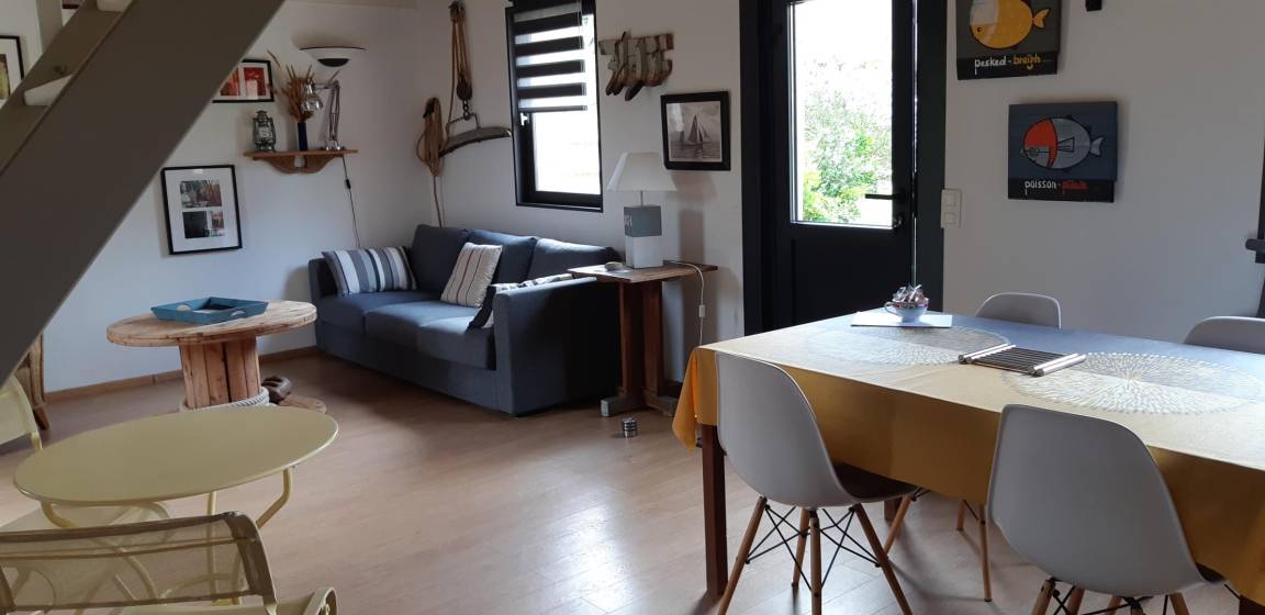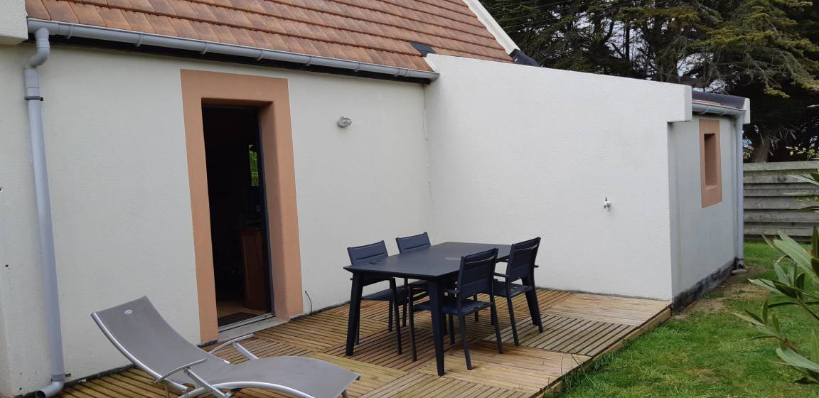 „Grand-mère fille et petite fille (ado) avons trouvé le gîte très agréable en tous points de vue (parking privé devant la maison - belle salle de bain - chambres avec rangements - cuisine avec équipement complet...) et le nous avons particulièrement apprécié la plage et les jolis chemins de balade tout proche ainsi que le petit jardin privé fleuri à l'arrière de la maison avec table chaises parasol et chaises longue...On y reviendra...“