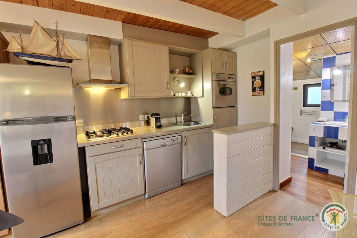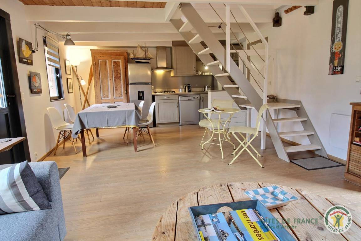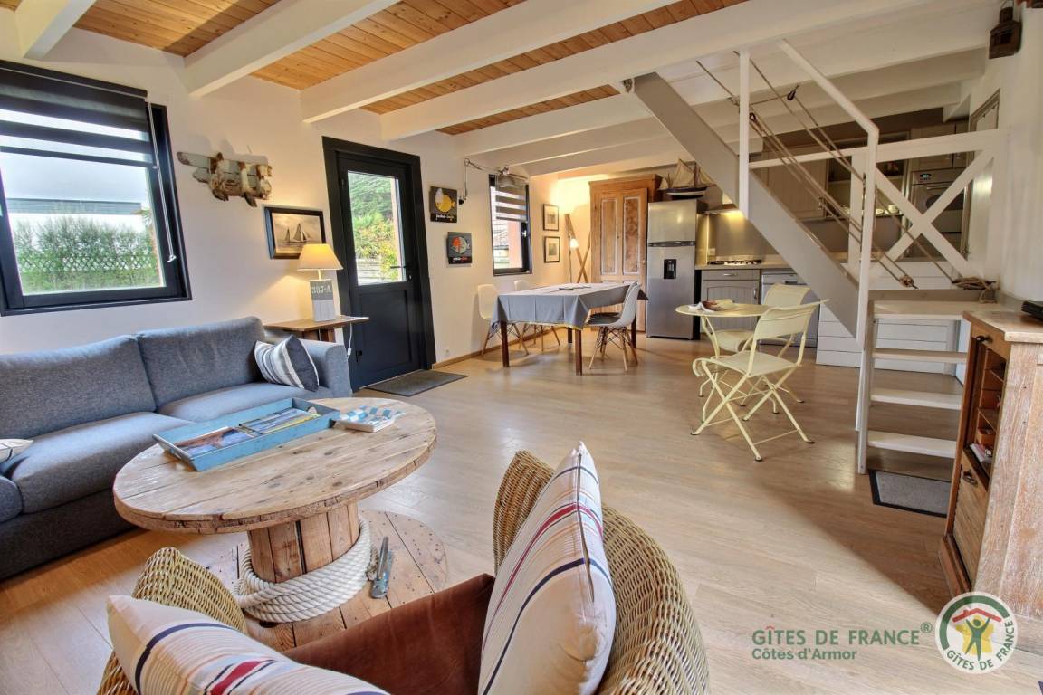 „Tout était très bien: Accueil de qualité avec la sympathique Madame Duchêne, situation (une rue à traverser pour arriver sur la plage), confort (lit et canapé), rien ne manquait pour cuisiner, terrasses très agréables (à l'avant et à l'arrière). Village de Landrellec très charmant. Nous recommandons vivement le gîte.“