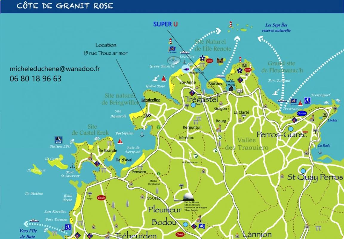 „Merci à Madame Duchène pour sa gentillesse, sa disponibilité, sa réactivité ainsi que ses conseils avisés qui nous auront permis de découvrir la magnifique région de Trégastel et de ses environs. Gîte très bien agencé et équipé avec 2 terrasses. Sa localisation toute proche de la mer et des sentiers côtiers nous aura permis de passer un magnifique séjour.“